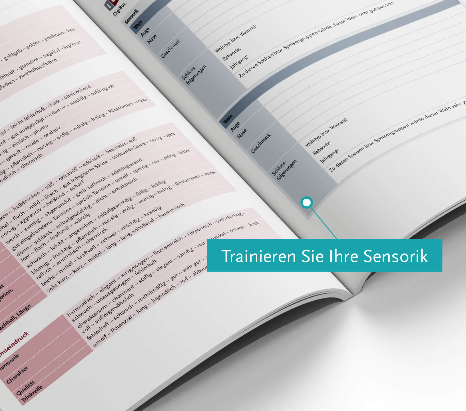 - Der Wein – Faktoren für den Genuss (Sensorische Beurteilung von Wein, Glas und Wein, Harmonie von Speisen und Wein, Wein und Gesundheit)