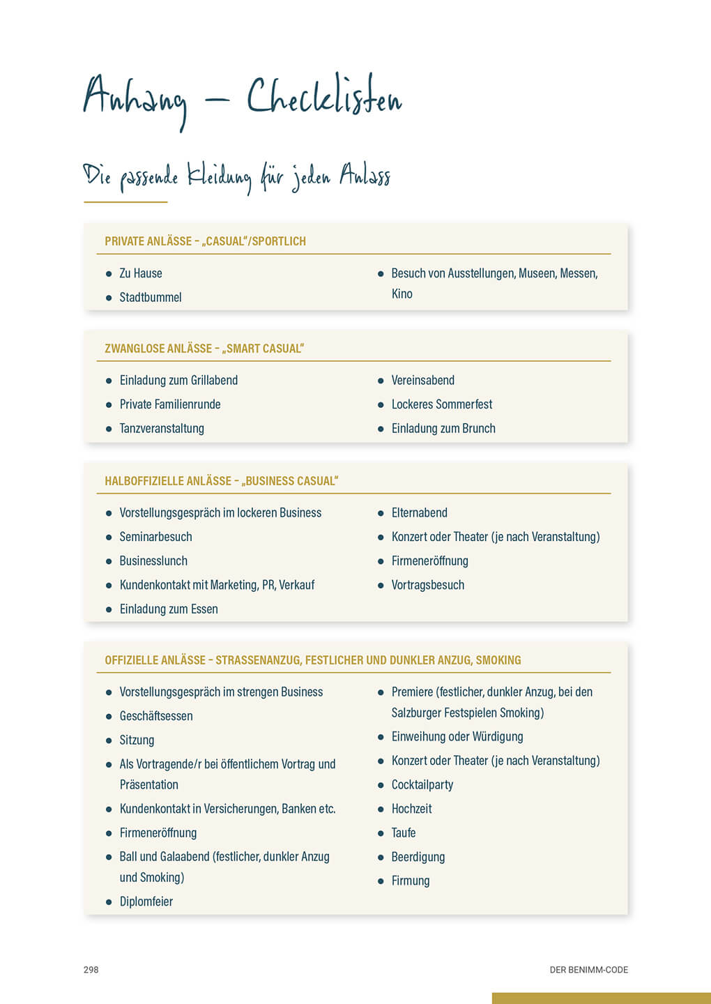 Dieses moderne Nachschlagewerk zu Dresscodes und zur aktuellen Etikette bietet sympathische Anleitungen, wie man sich in verschiedenen Situationen angemessen verhält, z. B. beim Small Talk, bei (Online‑)Sitzungen, bei öffentlichen Auftritten, bei Bewerbungsgesprächen, bei Einladungen oder im Hotel. Und es zeigt darüber hinaus, wie man sich stilvoll kleidet. So steigert man sein Selbstbewusstsein und seine Beliebtheitswerte. Wer die Codes kennt, kann sich situationsgerecht verhalten und hat die Fäden in der Hand. Die passende Kleidung tut ihr Übriges, sie unterstreicht den persönlichen Typ und unterstützt den Auftritt.