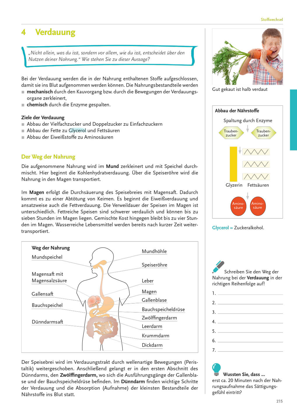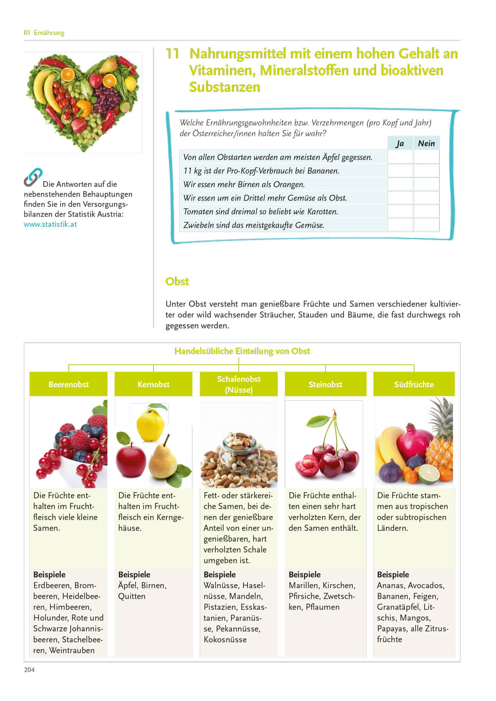 Zwei brandheiße Themen – so aufbereitet, dass sich junge Menschen angesprochen fühlen und sich dafür begeistern können. Wenn die Schüler/innen begreifen, dass sie selbst Verantwortung für sich übernehmen müssen, ist ein großer Schritt gesetzt. Die Einführung in den Bereich Gesundheit befasst sich dabei mit der Biologie des Menschen, mit Schwangerschaft und Säuglingspflege, der Alten- und Krankenpflege und dem Gesundheitstraining bzw. der Vorsorge. Dem Bereich Ökologie wird mit den Themen Umwelthygiene sowie Nachhaltigkeit und Globalisierung Rechnung getragen. Der Bereich Ernährung legt die Grundlagen dar: Das Ernährungsverhalten wird hier ebenso thematisiert wie Energie- und Nährstoffbedarf, die Aufgaben der Nahrung sowie das Körpergewicht. Nach einer ausführlichen Beschreibung der verschiedenen Lebensmittelgruppen wird der Stoffwechsel dargestellt. Ein Abschnitt des Buches widmet sich schließlich der Lebensmittelqualität. Und abgerundet wird das Thema Ernährung mit der Darstellung der Ernährung für verschiedene Personengruppen und der Darlegung des Zusammenhangs zwischen Ernährung und Krankheit.