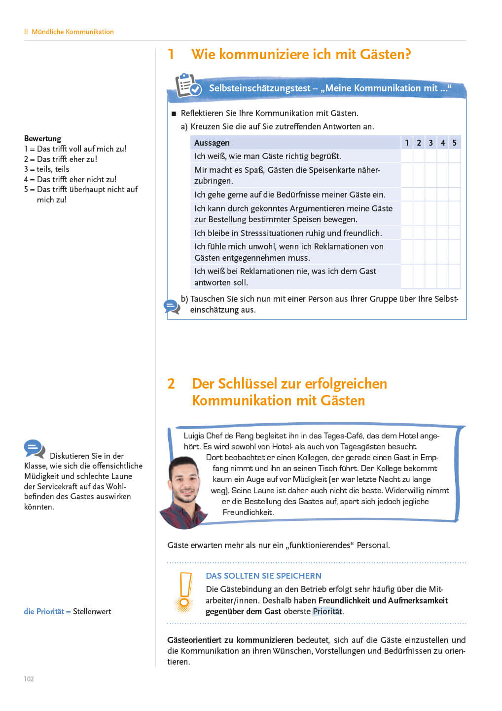 Guter Ausdruck, sicheres Auftreten und Redegewandtheit sind besonders in der Gastronomie gefragt. Als Arbeitsbuch konzipiert, zeigt „Deutsch und Kommunikation“ angehenden Fachkräften in der Gastronomie auf, wie gute Kommunikation verläuft. Das Buch erleichtert den Einstieg ins Berufsleben und hilft den Schülerinnen und Schülern, vor Gästen sicher und kompetent aufzutreten.