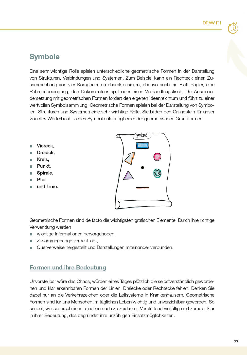 Flipcharts – Sketchnoting – Visuelle Moderation – Storydrawing: Zeichnen Sie es! Mit der Methode Storydrawing können Sie fachliche Inhalte, Prozesse und Präsentationen mit wenigen Strichen ausdrucksvoll visualisieren. Dieses Buch beinhaltet neben einer umfangreichen Symbolsammlung viele neue Visualisierungsideen für Ihre Besprechungen, Präsentationen, visuellen Moderationen und den Unterricht.