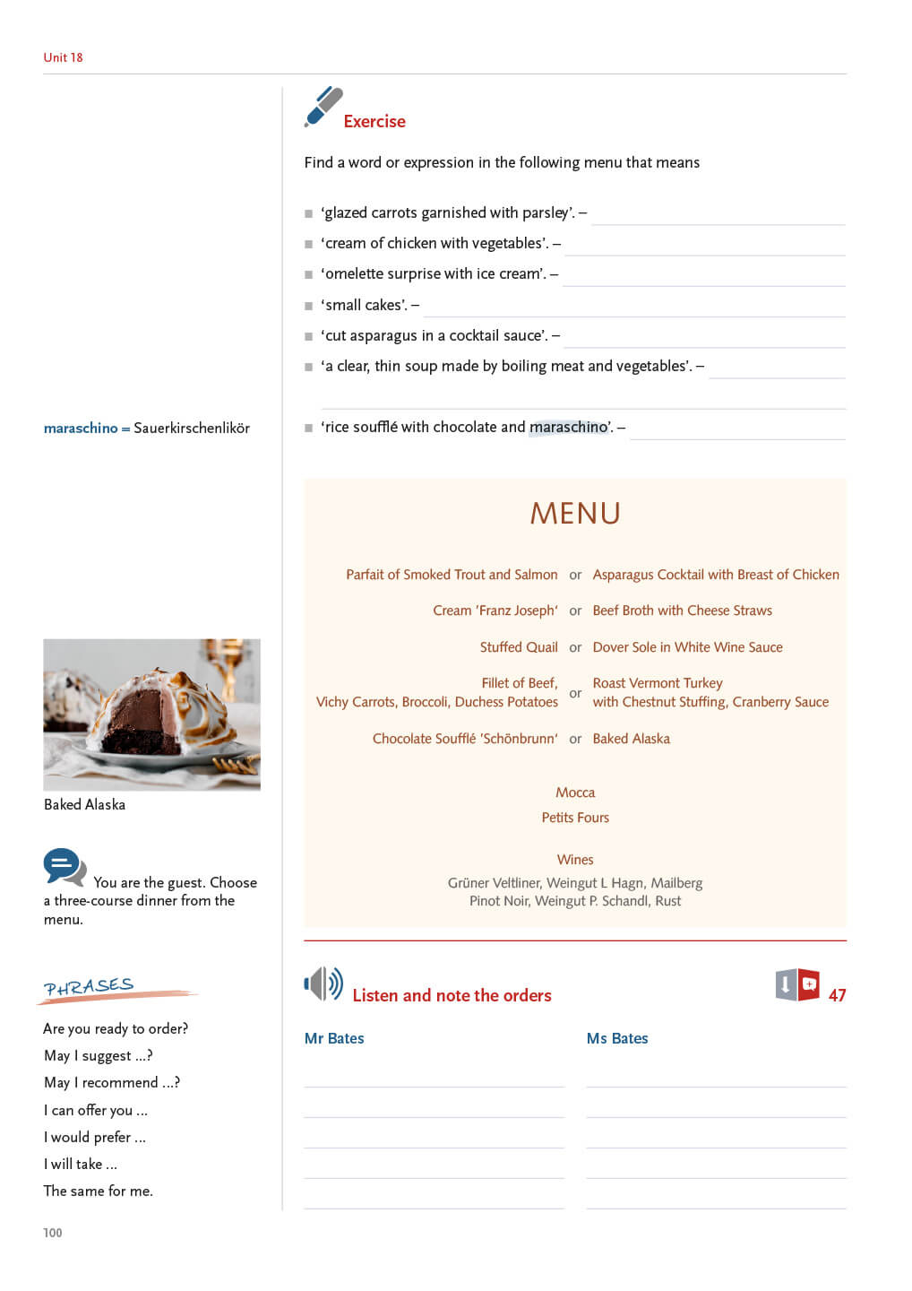 Eine umfangreiche Vokabelliste, nützliche Phrasen sowie ein Überblick über grammatikalische Grundlagen und Beispiele für Speisenkarten und Rezepte im Anhang des Buches machen dieses Lehrwerk zu einem lebenslangen Begleiter und Nachschlagewerk.