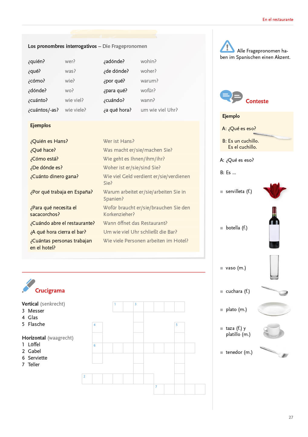 Eine Vielfalt von Sprechanlässen und Übungen (auf GERS-Niveau B1) hilft beim Aufbau praxisrelevanter Kompetenzen. Damit kann man Gästen in deren Landessprache den Weg zu Sehenswürdigkeiten beschreiben und erklären, was ein Wiener Schnitzel ist.