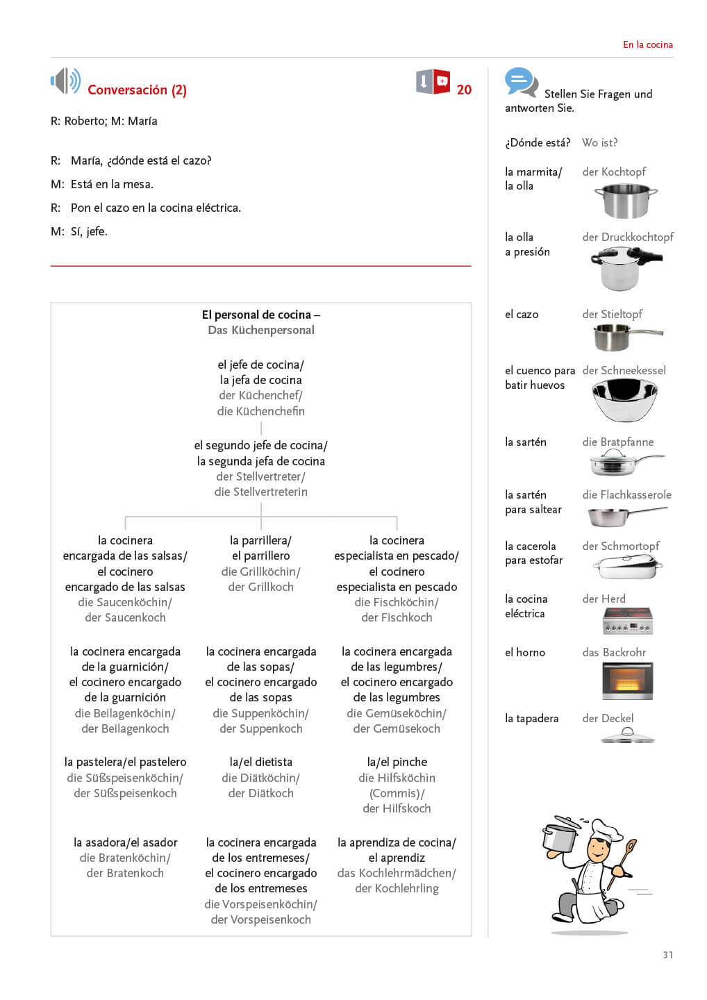 Eine umfangreiche Vokabelliste, nützliche Phrasen sowie ein Überblick über grammatikalische Grundlagen und Beispiele für Speisenkarten und Rezepte im Anhang des Buches machen dieses Lehrwerk zu einem lebenslangen Begleiter und Nachschlagewerk.