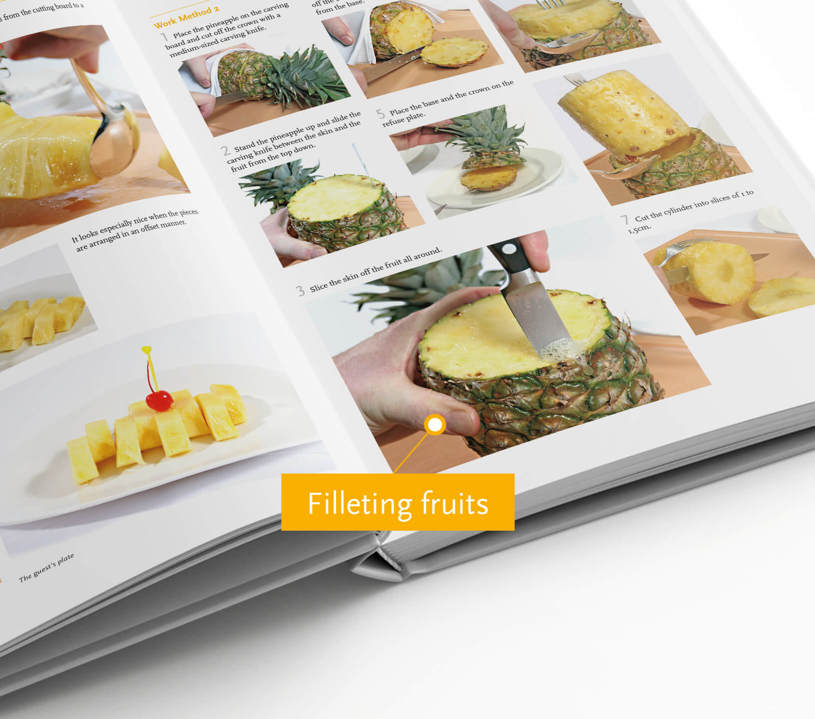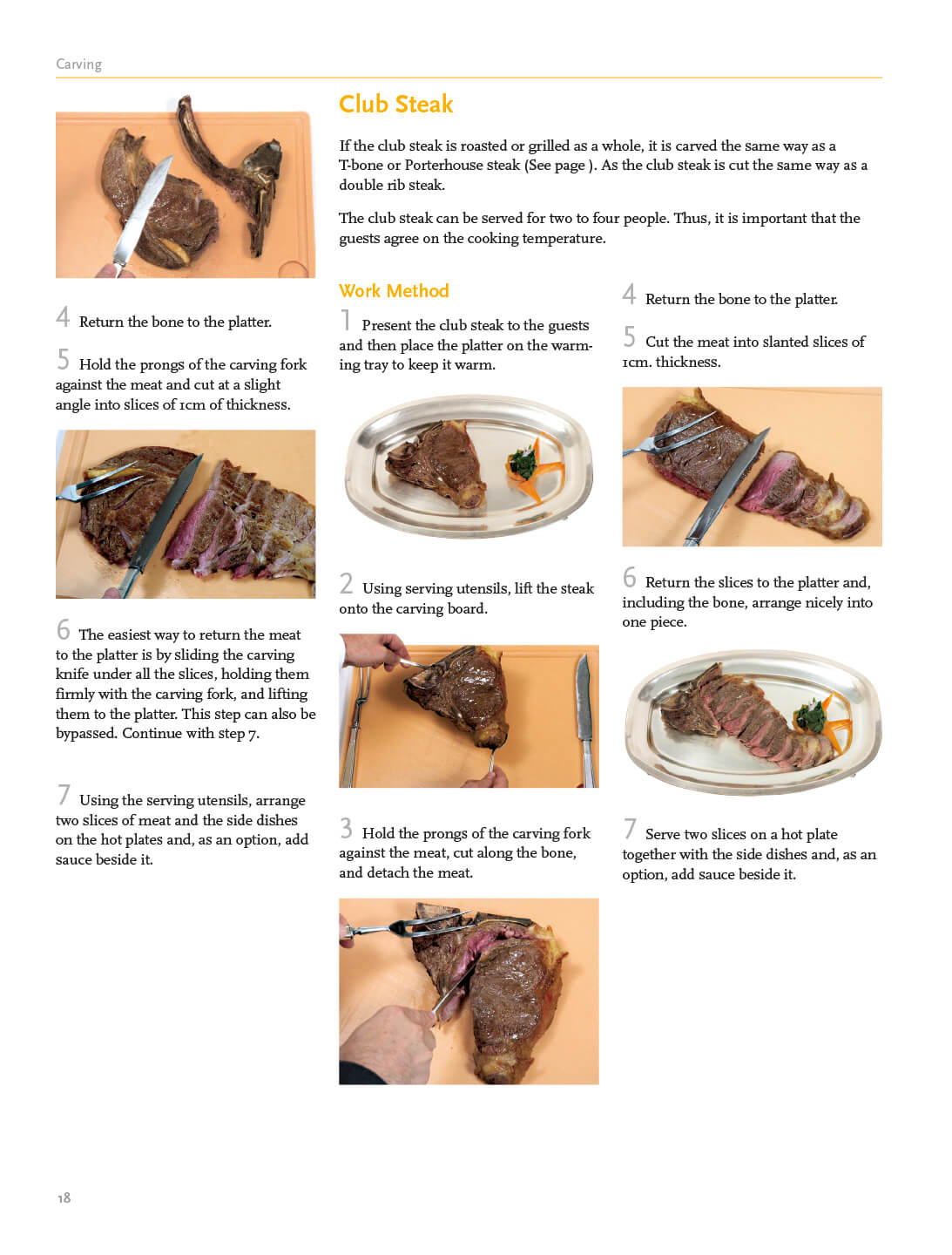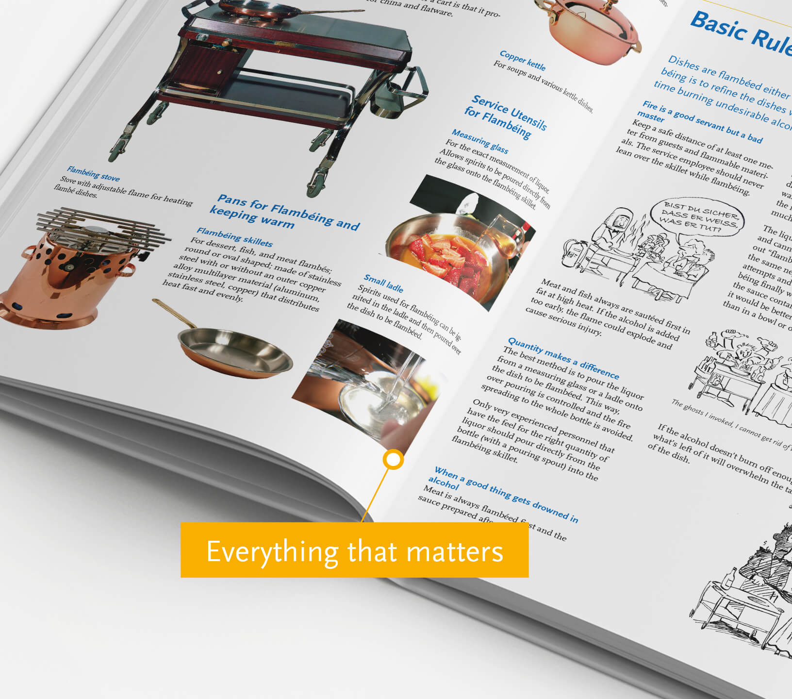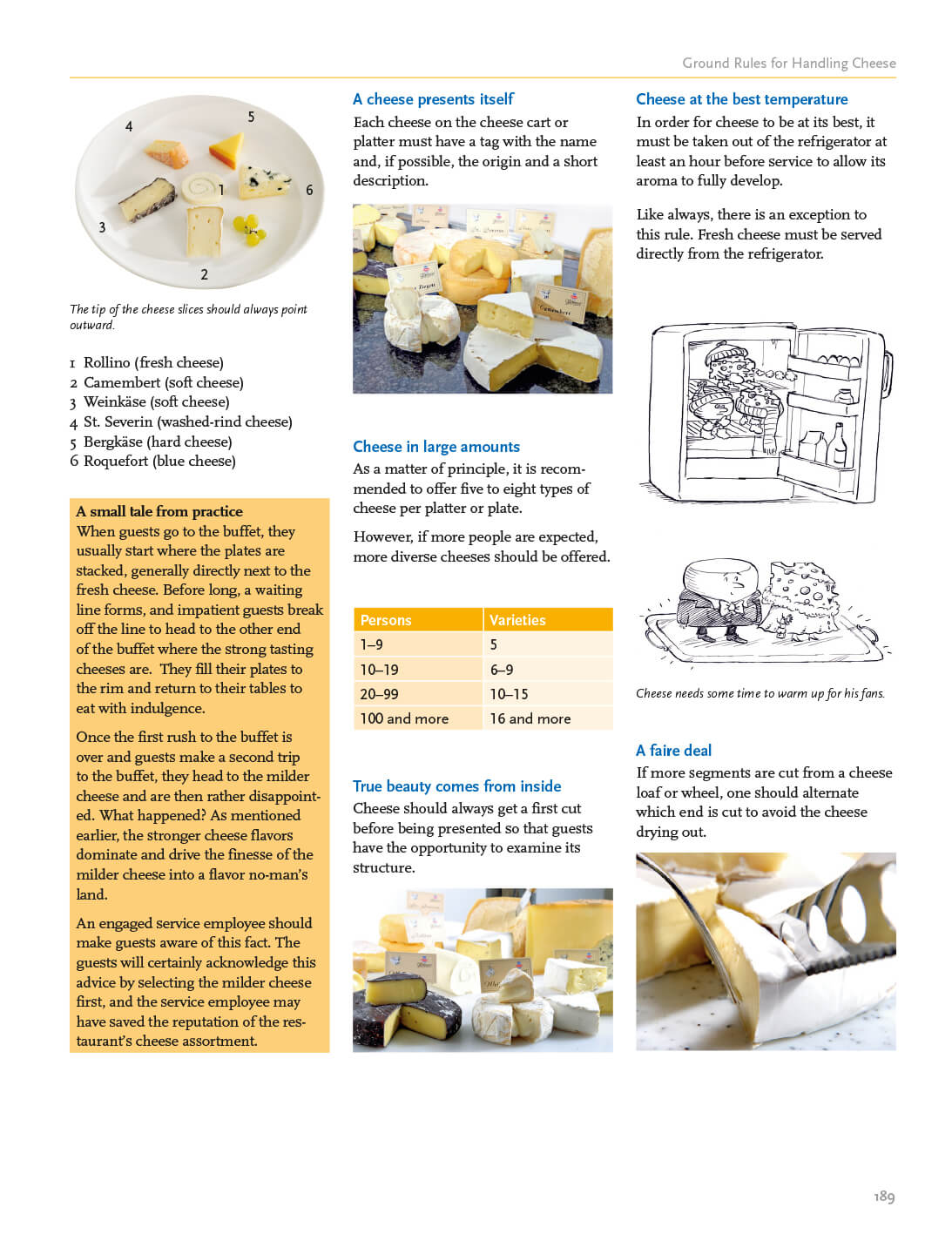Carving, filleting, flambéing and marinating are superior skills required of all accomplished service employees for they distinguish them as masters in their profession. Furthermore, the perfectly performed service of cheese or coffee, where guests can at the same time gain knowledgeable advice, speaks to the quality of the employee as well as to the establishment.