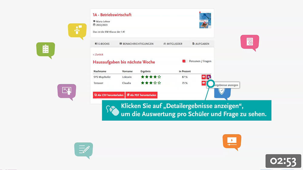 Kurze Tutorial-Videos unterstützen Sie, schnell und einfach die DigiBox und das digitale Klassenzimmer kennenzulernen: von der Registrierung bis zu den automatischen Auswertungen der Übungen.