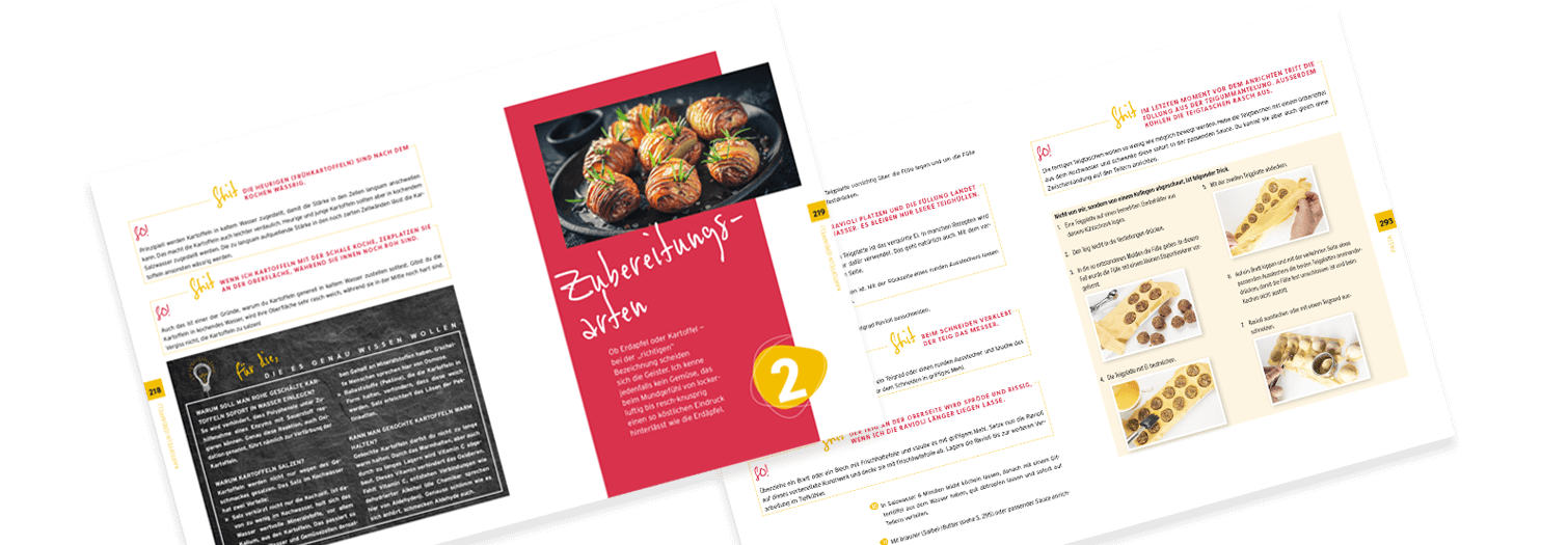 Kirischitz: Ich bin dabei von Speisen-Klassikern ausgegangen, Gerichten, die man im Alltag zu Hause oder bei besonderen Anlässen kocht, wenn Freunde kommen – oder der neue Schwarm ... Ich habe dabei besonders versucht, Rezepte auszuwählen, bei denen die Erhältlichkeit der Zutaten einfach ist. Auch die reale Nachmachbarkeit stand im Vordergrund. Diese spigelt sich auch in den Speisenfotos wider. Wenn man es richtig macht, sieht das Ergebnis wie auf den Abbildungen aus. Von künstlichem Foodstyling habe ich Abstand genommen, denn das frustriert letztendlich nur, wenn man es nie so hinbekommt. Gar nicht so hinbekommen kann! Das Buch beginnt mit Suppen, Vorspeisen und Salaten – im Laufe des Buches nehme ich aber auch Bezug auf die Grundzubereitungsarten: Sieden, Braten, Frittieren – aber auch Dampfgaren oder die Sous-vide-Methode.