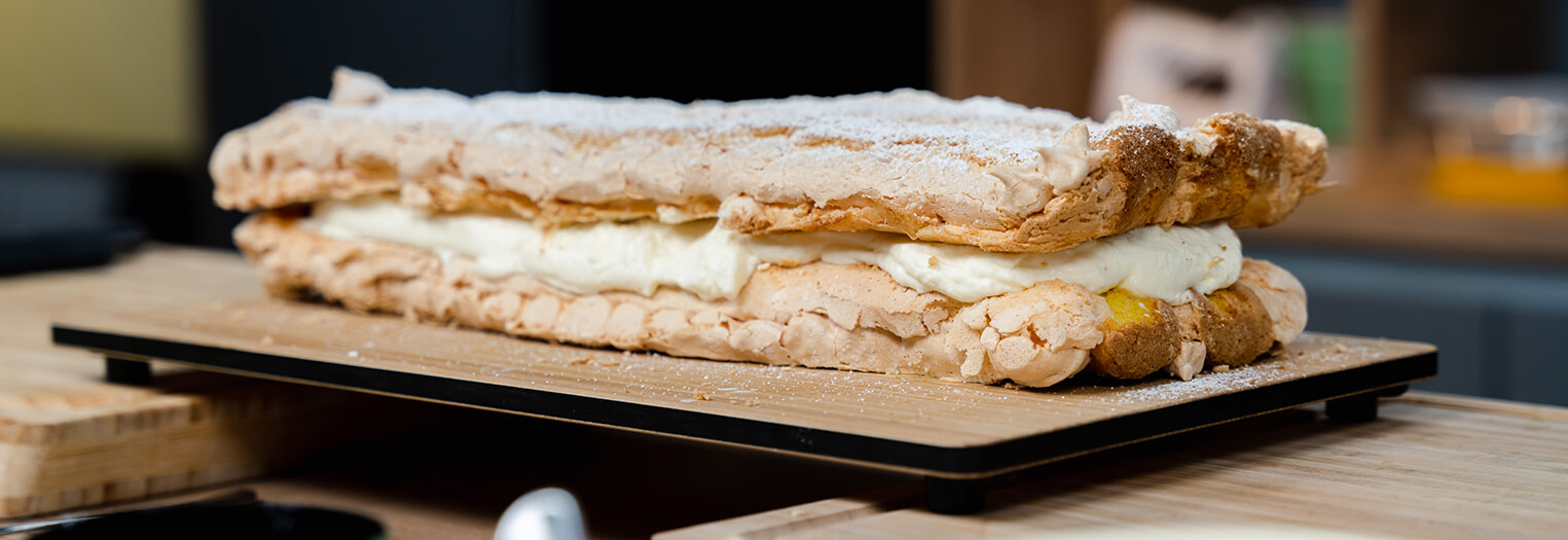 Richard: „Ich bringe ein ganz modernes, spannendes Dessert, das trotzdem mit meinen klassischen Kindheitserinnerungen gepaart ist: Himbeerkardinalschnitte nach einem Rezept von meiner Tante Herta. Was ist eigentlich dein Lieblingsgericht, Silvia?“