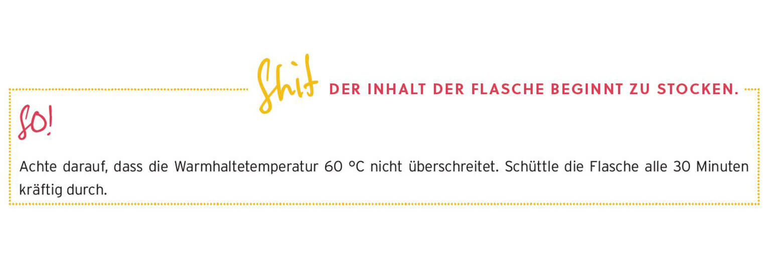 - Im Backrohr oder im Wasserbad bei 60 ºC warm stellen, Flasche öfters schütteln.