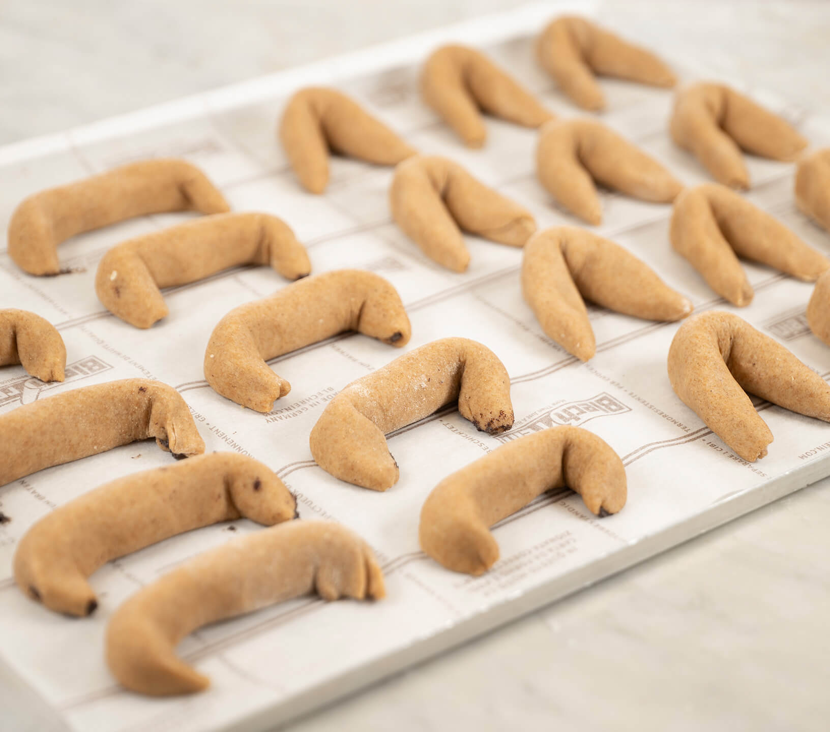 Das Trocknen der Eistreiche bewirkt beim Backen die typische Rissbildung an der Oberfläche der Beugel.