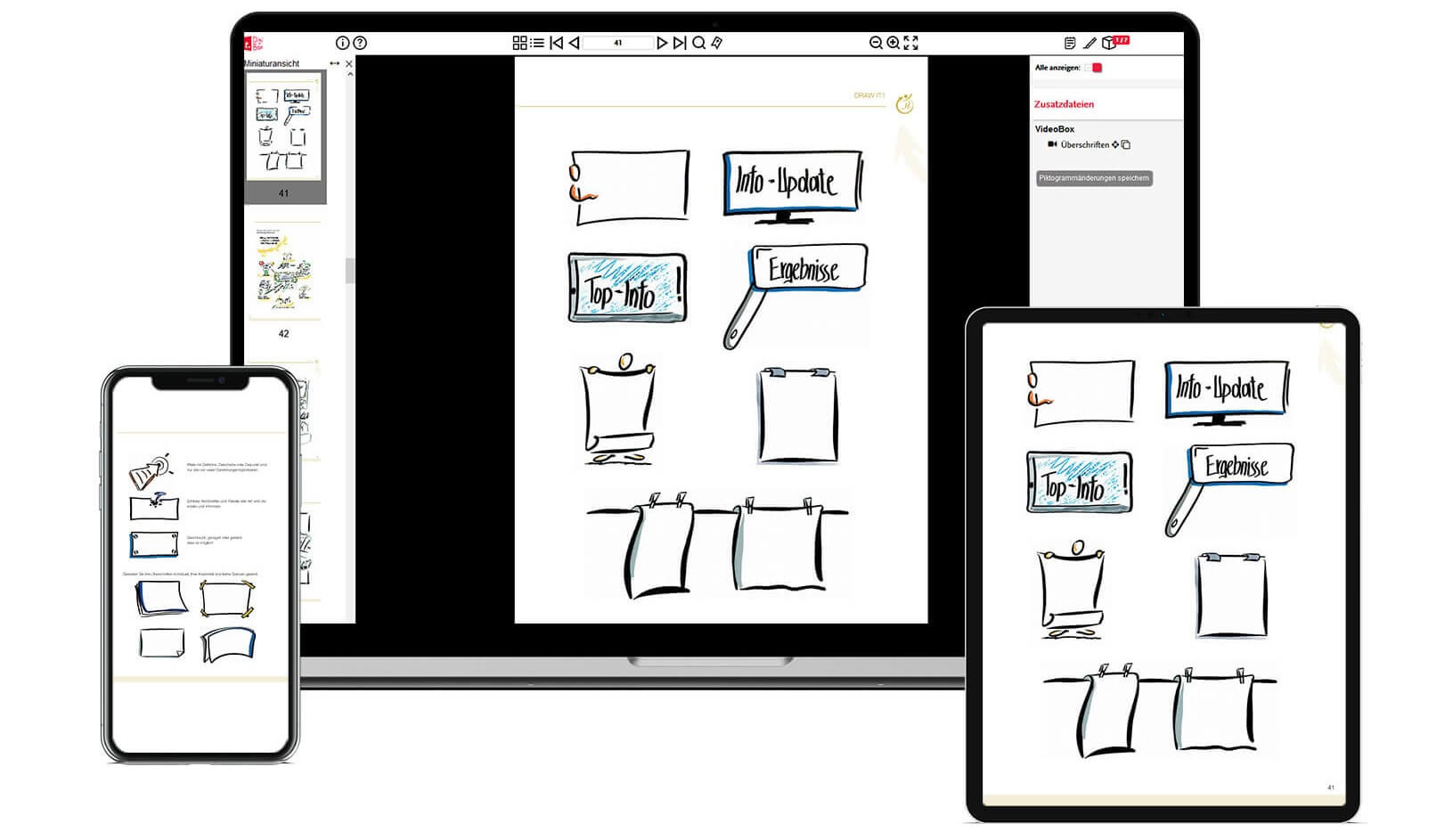Stadlbauer: Es sind Vorschläge, die jeder für seine Zwecke adaptieren kann. Das Buch versteht sich als eine Art Methodenkoffer. In der Praxis kommt man bereits mit 20–30 Zeichnungen aus, egal, ob es sich beim Storydrawing um digitale oder analoge Medien handelt.