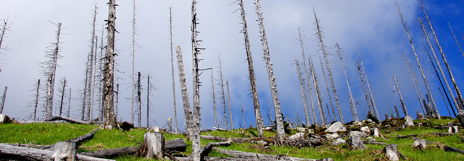 Zwischen den Baumskeletten, unter denen sich aber schon wieder üppiges Grün mit vielen Jungbäumen angesiedelt hat, wandert man hinab zum Stifter-Obelisken. Wie ein Auge inmitten der Wälder liegt tief unten der Plöckensteiner See – ein Relikt aus der Eiszeit. Der Weg führt über kompakte Fels- und Wurzelwege hinab zum Ufer mit Rastplätzen und einem Fotopoint. Weiter folgt man dem Weg vom See abwärts, ehe in einer Linkskurve ein Wegweiser den Anstieg nach rechts in Richtung Plöckenstein anzeigt. Auf Waldwegen erreicht man wieder den Grenzkamm, auf dem man höher steigt bis zur Wegkreuzung in Richtung Oberschwarzenberg kurz vor dem Plöckensteingipfel. Der Nordwaldkammweg gibt die weitere Richtung vor und so erreicht man die Abzweigung vor dem Steinernen Meer. Von hier haben wir noch den kleinen Umweg über die Teufelsschüssel gewählt. Mitten im Wald liegen mächtige, übereinander getürmte Granitfelsen, die einen kleinen Gipfel ergeben, der über Aluleitern erreicht wird. Den Teufel haben wir nicht getroffen, der ist wohl eher in nebeligen Nächten unterwegs, aber die wassergefüllte Schüssel im Gipfelfelsen ist nicht zu übersehen. Von hier geht es in einer halben Stunde zurück zum Parkplatz.