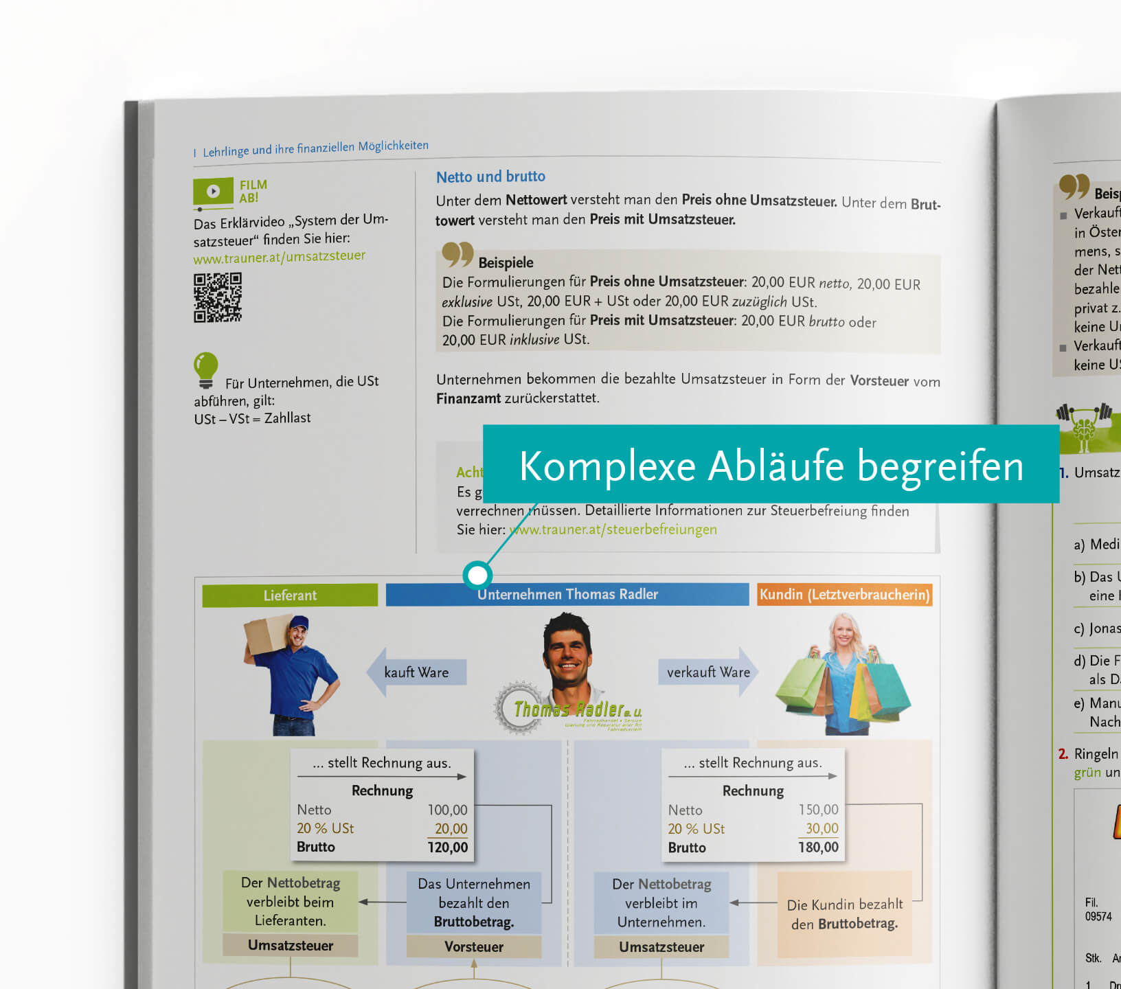- Bitte bestellen Sie ein Prüfexemplar nur direkt beim Verlag (bestellung@trauner.at) – nicht beim Buchhandel. Dazu benötigen wir Ihren Namen und Ihre Schulanschrift. Überzeugen Sie sich so von der Qualität unserer Schulbücher.