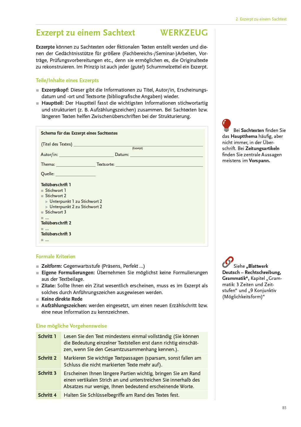 - Exzerpieren - Zusammenfassen - Protokollieren