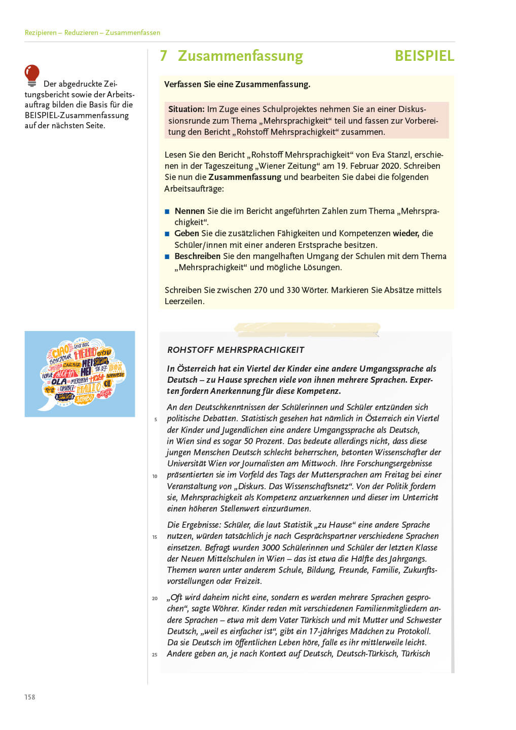 Dies hat den Vorteil, dass die Schülerinnen und Schüler am Ende ihrer Ausbildung ein Kompendium aller gelernten Inhalte besitzen, das sich optimal zum Lernen für die Matura eignet. Gleichzeitig werden sie dazu motiviert, selbst produzierte Texte zu hinterfragen, sie zu überarbeiten und ihr Sprachbewusstsein weiterzuentwickeln.