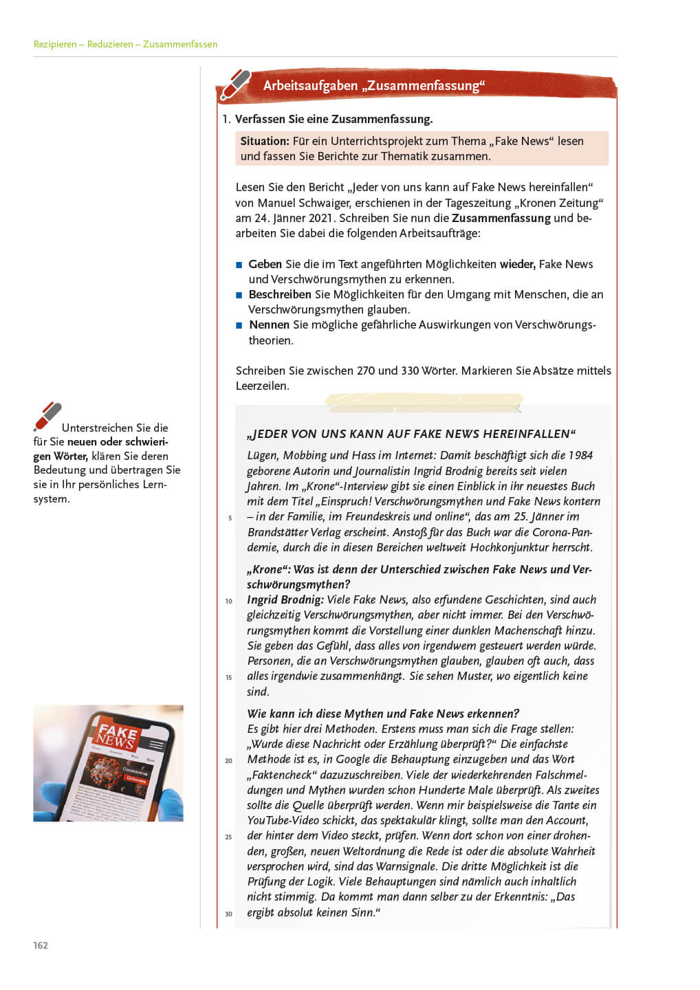 - Rezipieren – Reduzieren – Zusammenfassen (Textsorten: Exzerpt, Inhaltsangabe, Zusammenfassung)
