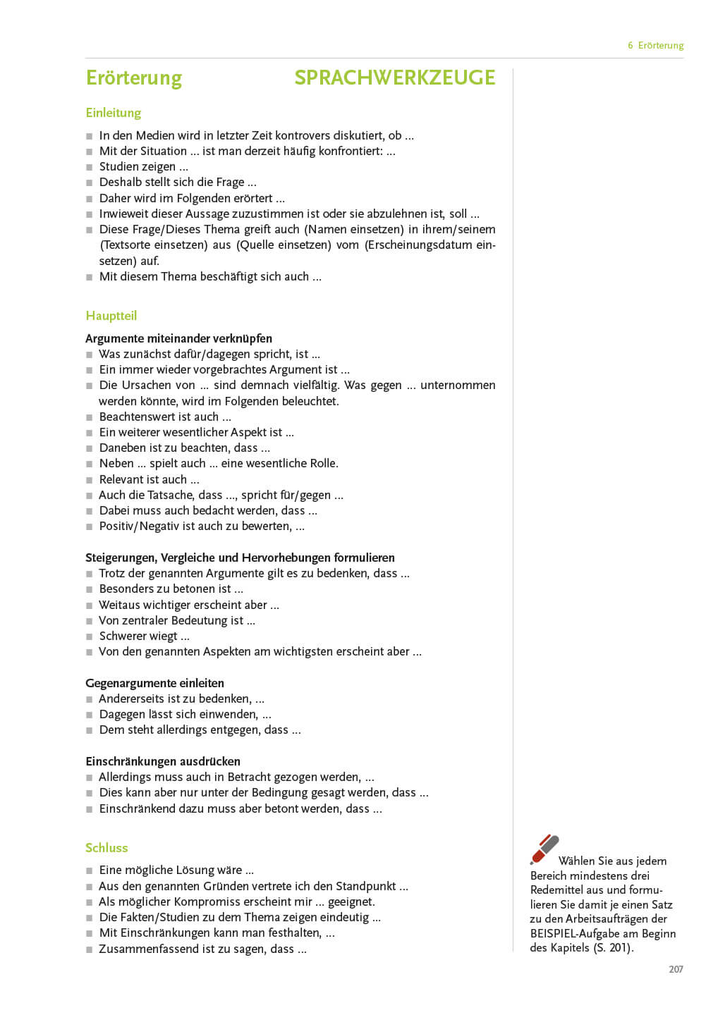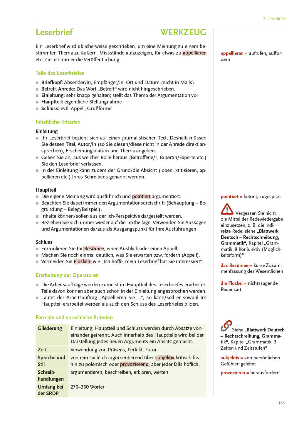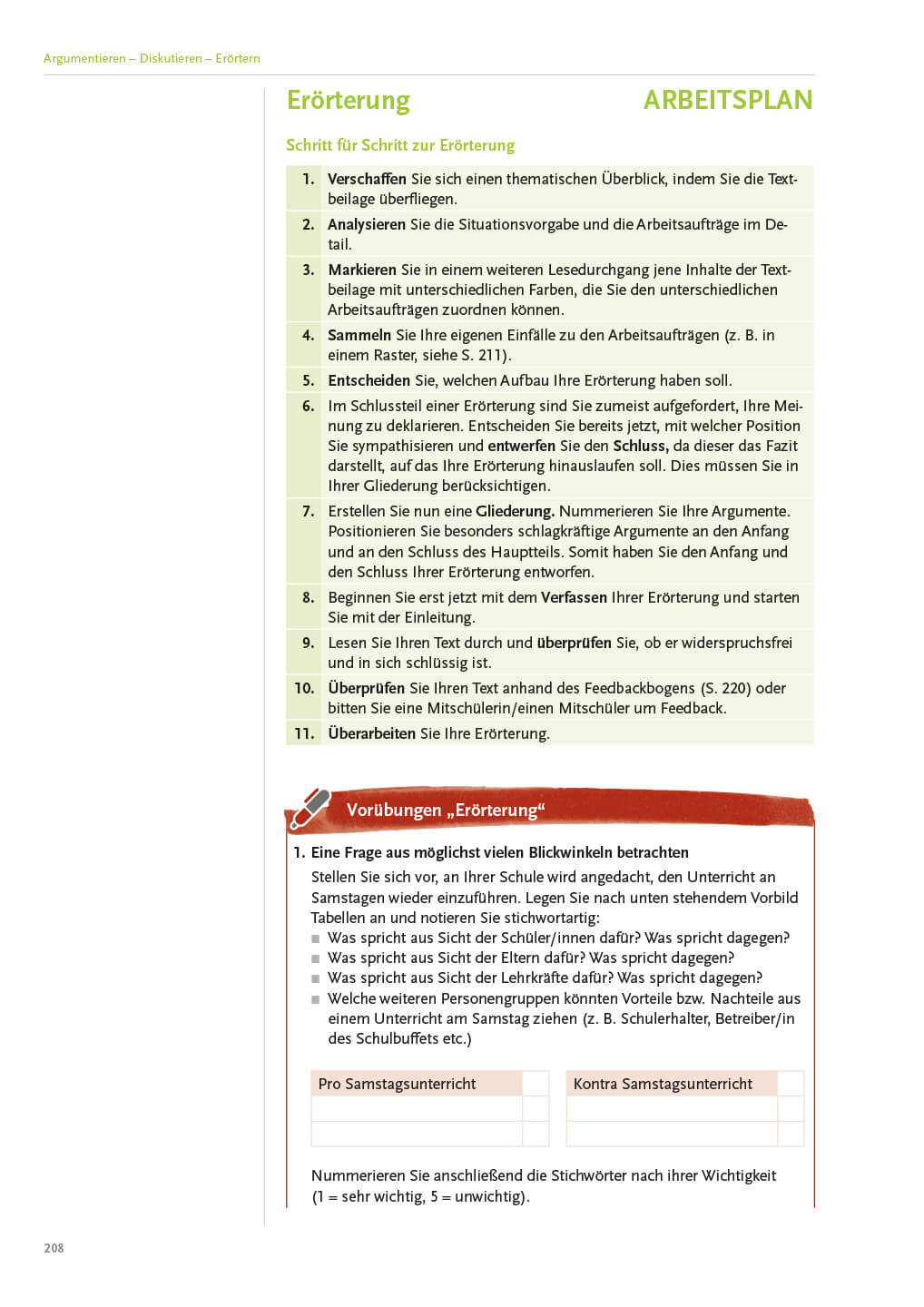 - Argumentieren – Diskutieren – Erörtern (Textsorten: Leserbrief, Erörterung)
