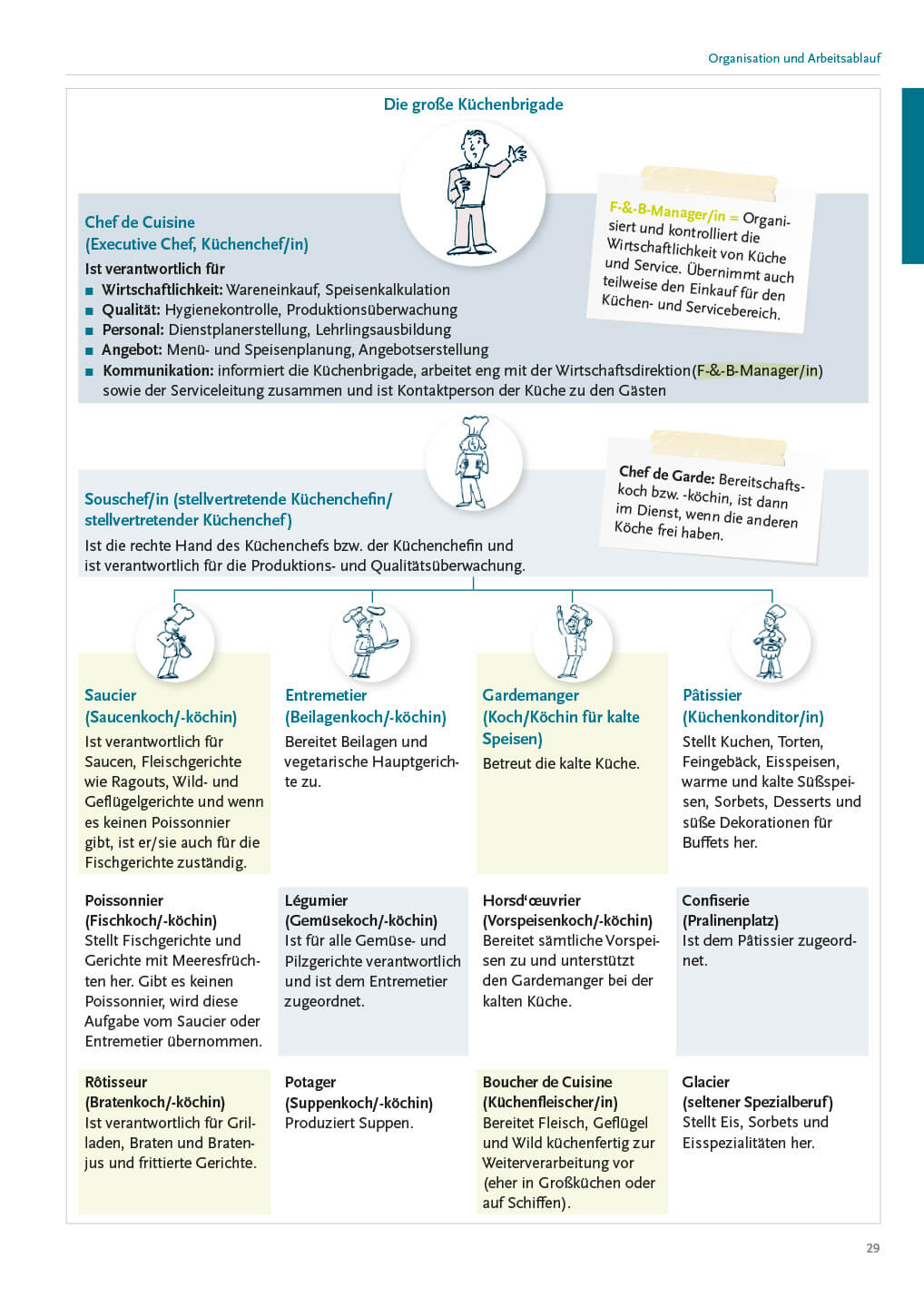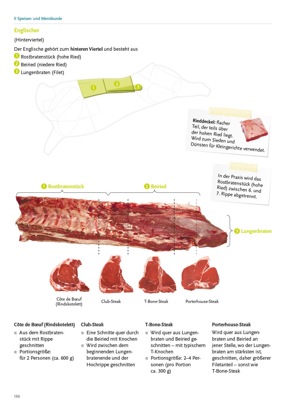 - Speisen- und Menükunde mit Rezepten von der kalten Küche über Suppen, Saucen, Fleisch und Beilagen bis zu Soufflés und Eis
