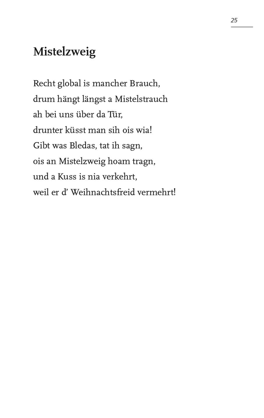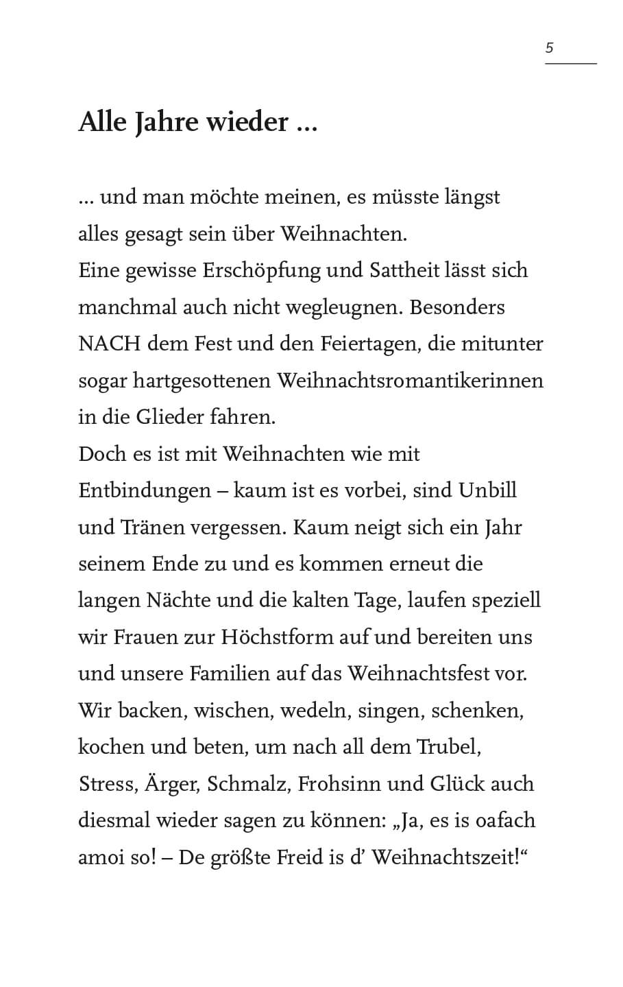 Wenn die Tage kürzer werden und die Menschen mit allen Sinnen dem Weihnachtsfest entgegenfiebern, läuft Monika Krautgartner jedes Jahr zur Höchstform auf. In schönster oberösterreichischer Mundart stimmen ihre Texte auf Weihnachten ein. Sie lässt ihre Leserinnen und Leser einen Blick auf ihre glitzernde, fröhliche Weihnachtswelt werfen.