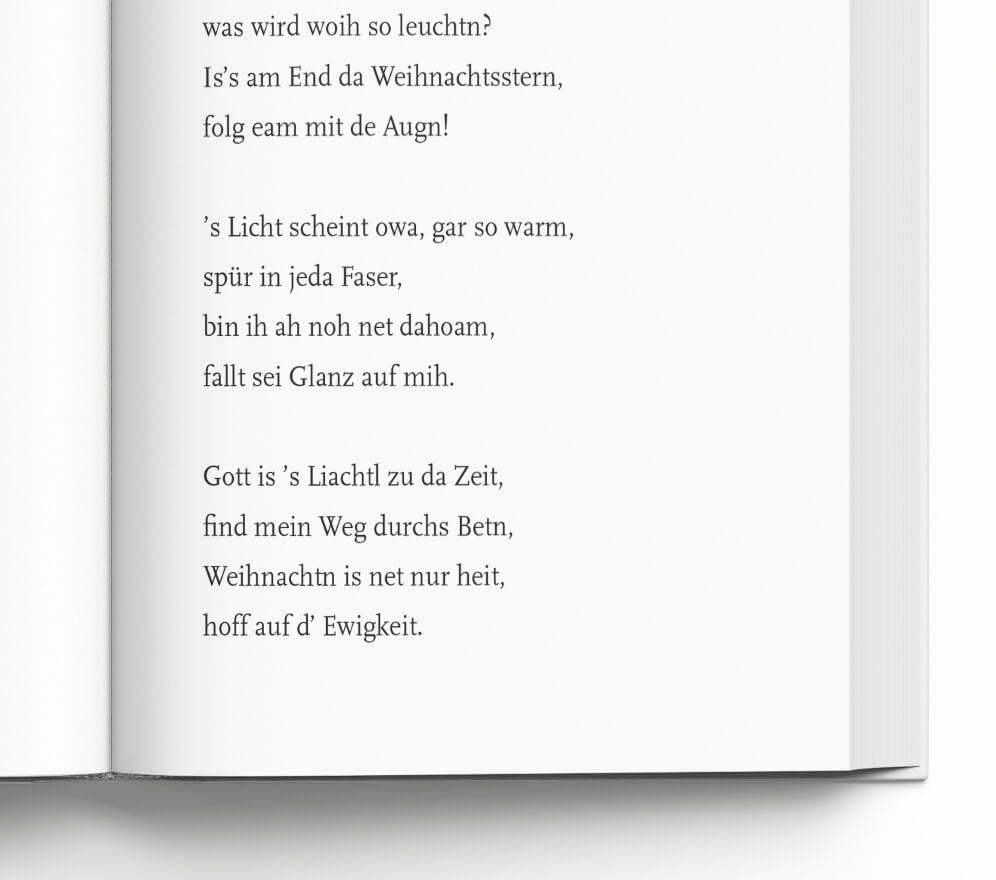 Ein neues Weihnachtsbuch mit heiteren Alltagsgeschichten und Mundart-Poesie der Buchstabenmutter® aus dem Innviertel.