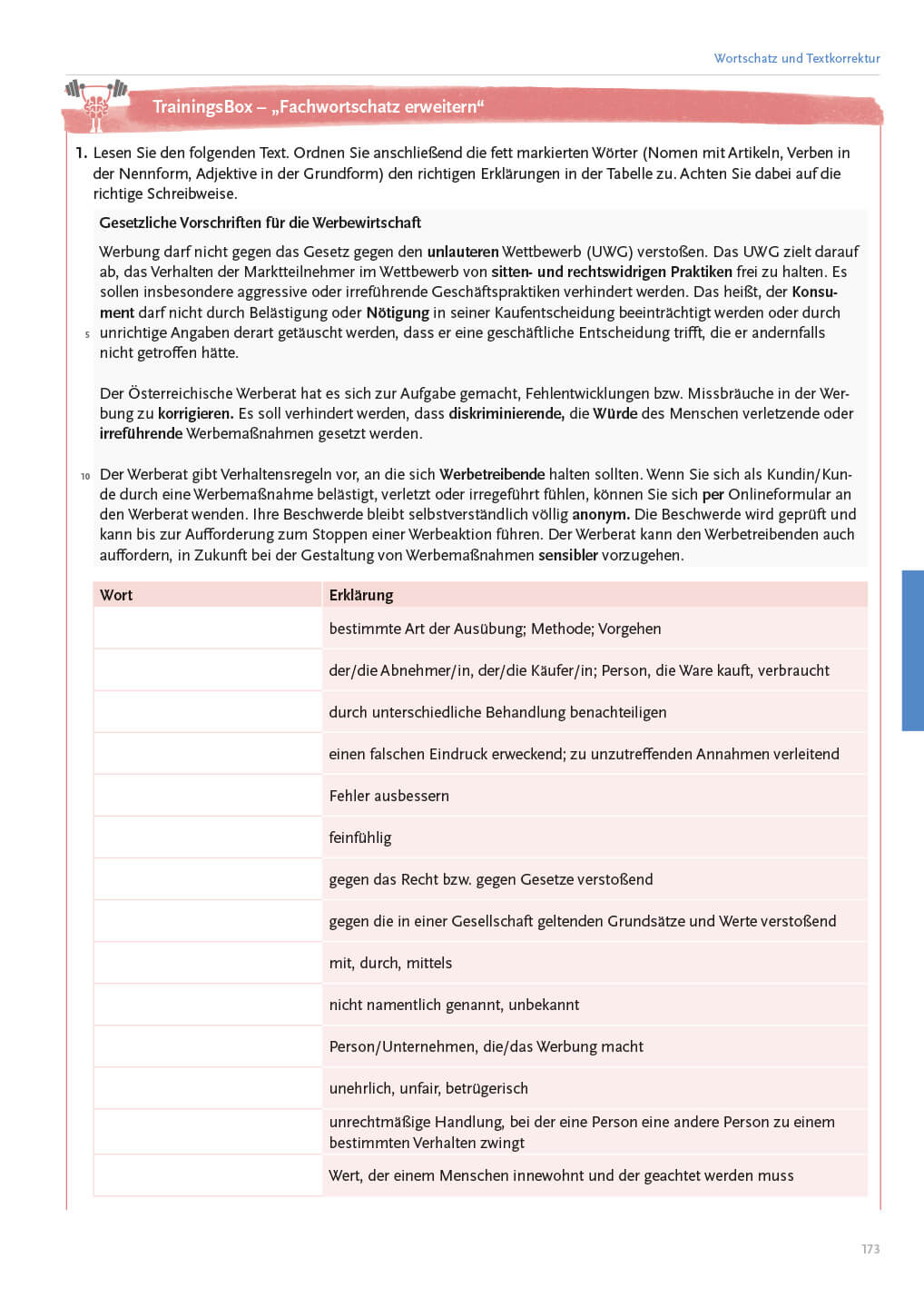 Ein besonderes Augenmerk wird bei der Neubearbeitung auf die Erweiterung des Wortschatzes der Schüler/innen gelegt. Am Ende jedes Kapitels werden wesentliche Begriffe gefestigt. Nützliche Phrasen bereiten die Schüler/innen außerdem ganz konkret auf verschiedenste Kommunikationssituationen vor.