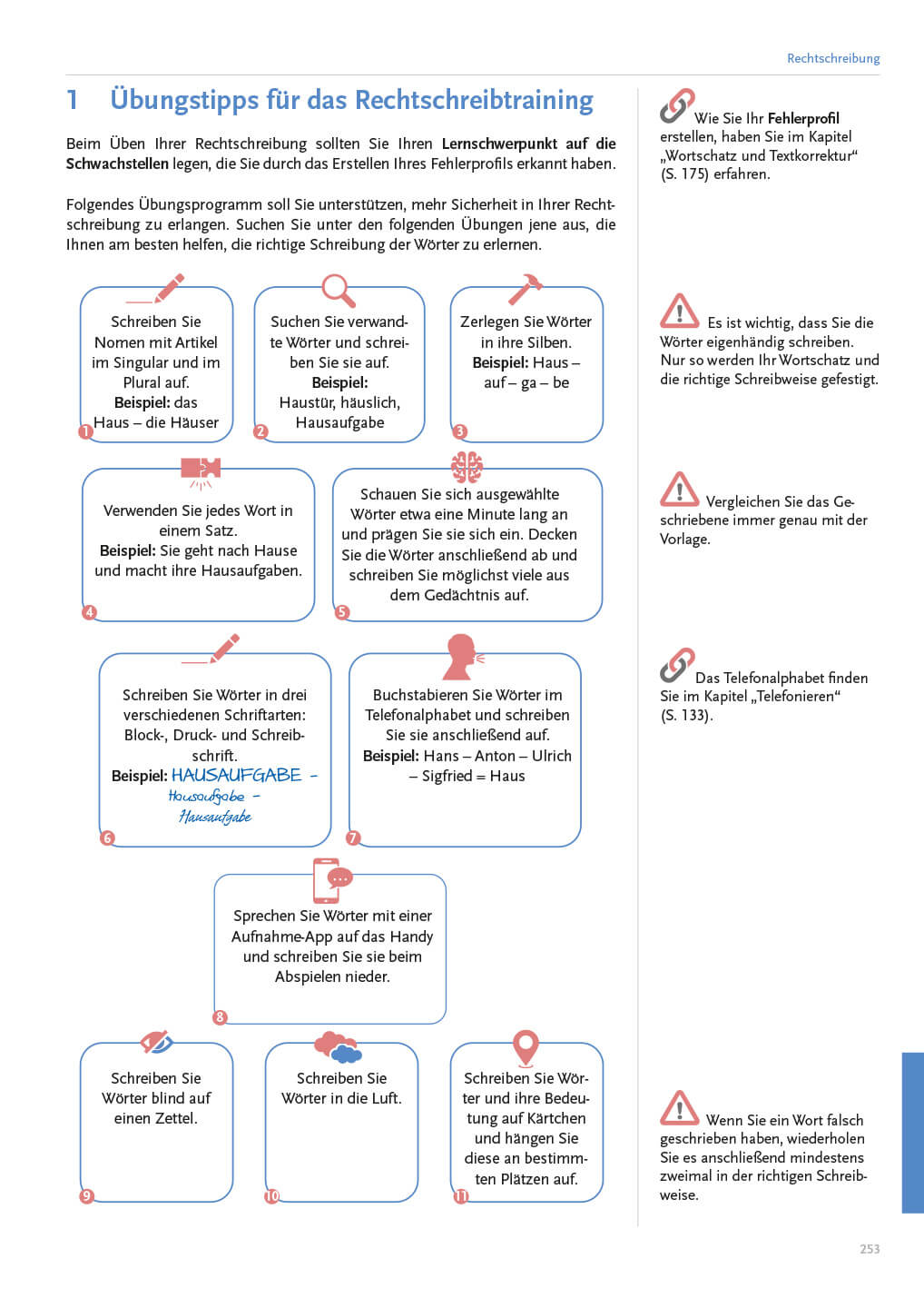 Eine Vielzahl an abwechslungsreichen Übungen lädt die Schüler/innen dazu ein, sich intensiv mit Deutsch und Kommunikation auseinanderzusetzen. Gerade das praktische Üben fördert das kompetente Auftreten der Schüler/innen in allen Lebenssituationen.