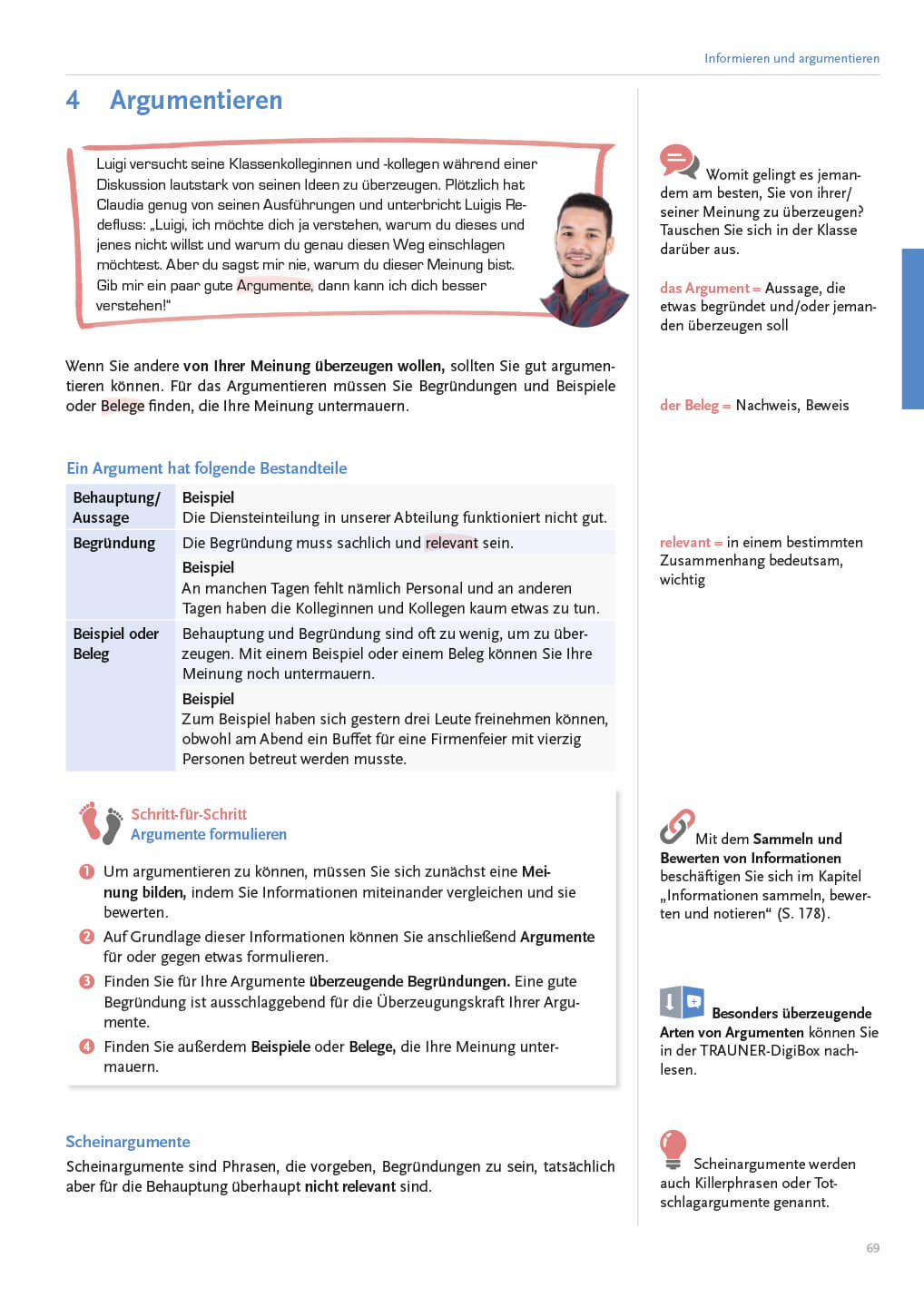 Die beiden Lehrlinge Claudia und Luigi begleiten durch das gesamte Lehrwerk und führen den Schülerinnen und Schülern anhand alltags- und praxisnaher Situationen vor Augen, dass sie täglich in ihrem beruflichen und privaten Umfeld mit dem Thema Kommunikation konfrontiert sind.