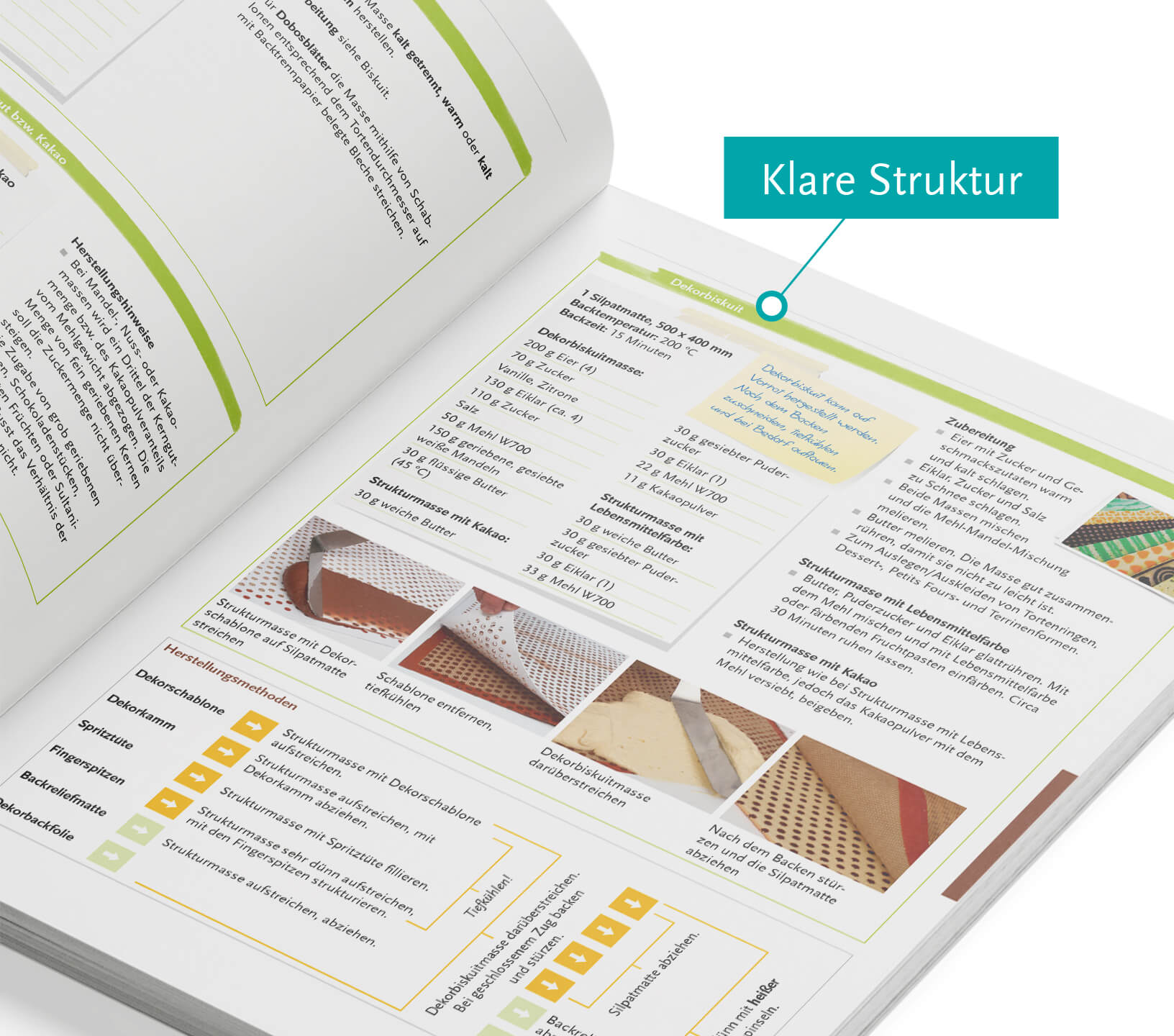 Kompakt und praxisnah! Das haben wir uns für diesen Ausbildungsschwerpunkt als Motto auf die Fahnen geheftet. So ist ein Nachschlagewerk und Praxisbuch für die Patisserie entstanden, das die Schülerinnen und Schüler in der Praxis optimal unterstützt. Auch sind die LMS-Fragen berücksichtigt – somit steht dem erfolgreichen Abschluss dieser Zusatzausbildung nichts im Weg!