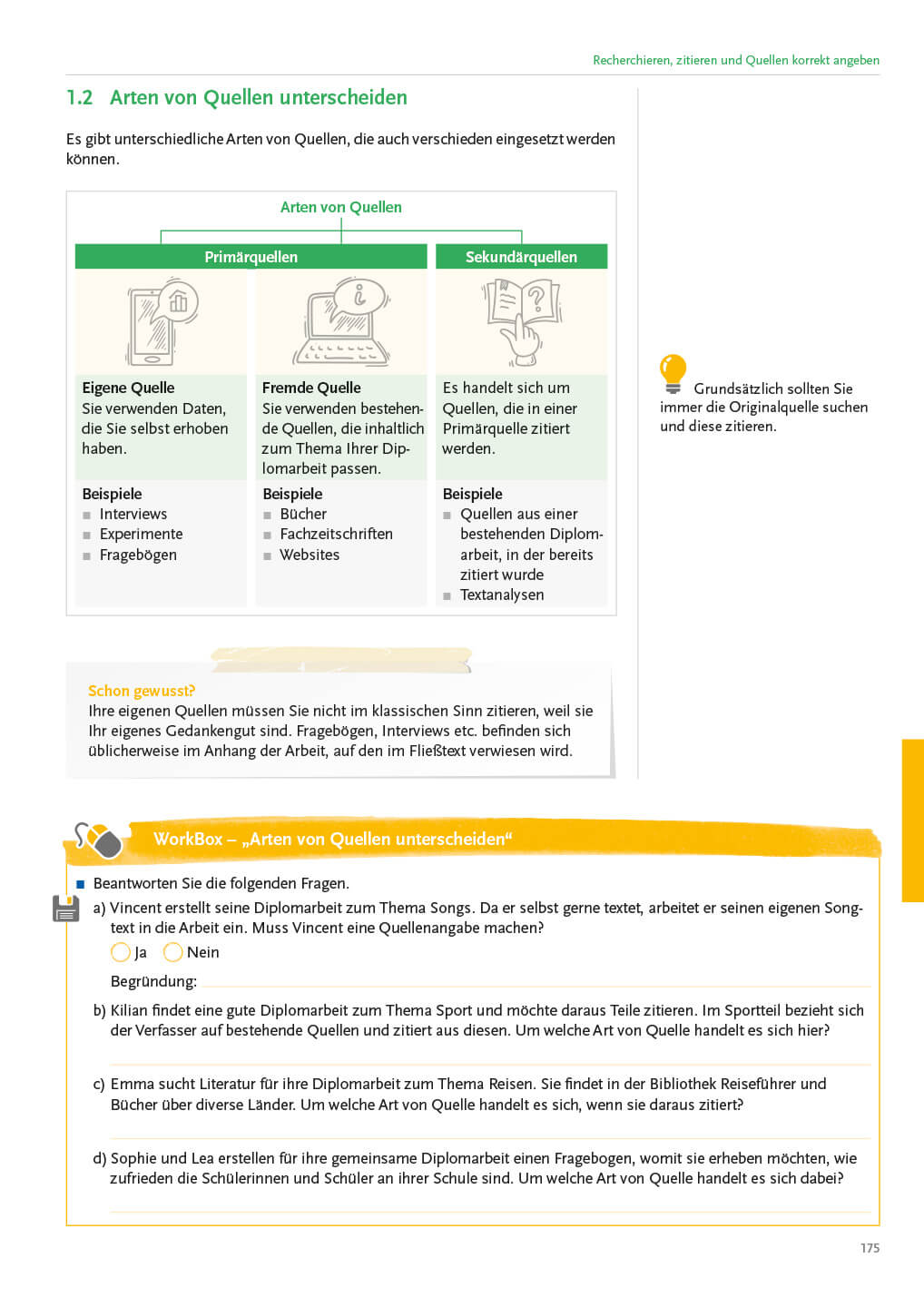 - Recherchieren, zitieren und Quellen korrekt angeben