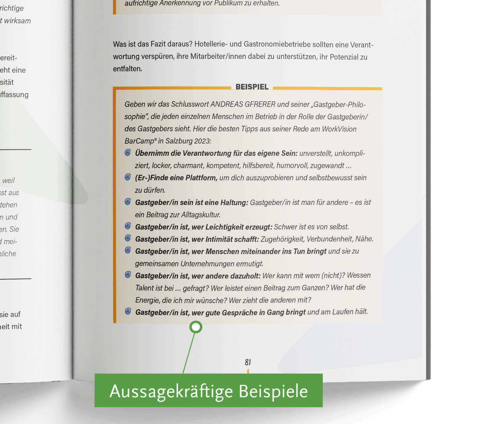 Personalfluktuation ade! Dieses (etwas andere) Praxishandbuch richtet sich an alle, die in Hotellerie und Gastronomie Führungsverantwortung übernehmen – und dabei nicht nur Gäste, sondern auch Mitarbeiter/innen dauerhaft begeistern möchten. Mit Theorie-Inputs, effektiven Übungen, inspirierenden Best-Practice-Beispielen und zu guter Letzt vielen Reflexionsfragen liefert dieses Buch sofort anwendbare Werkzeuge für den Führungsalltag.