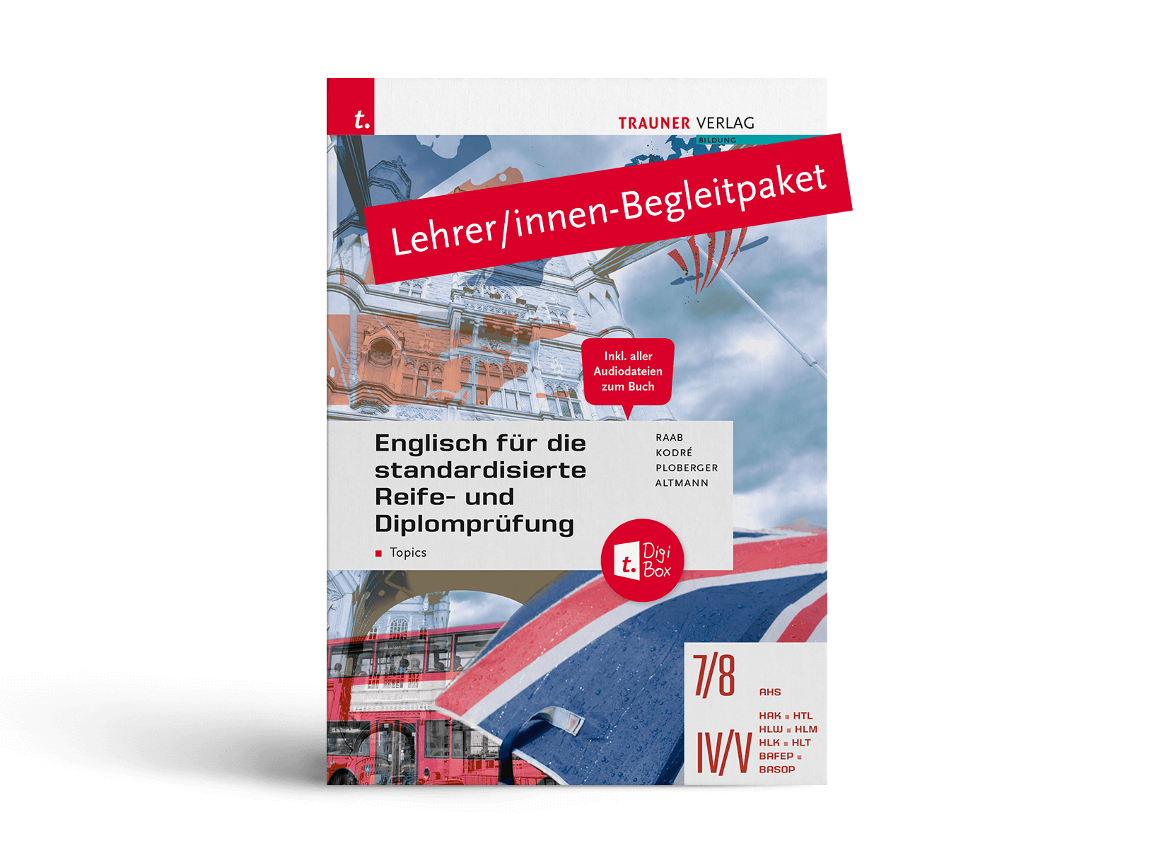 Profitieren Sie außerdem von den umfangreichen Online-Ergänzungen mit zahlreichen Vorteilen in der innovativen Lehr- und Lernplattform TRAUNER-DigiBox (www.trauner-digibox.com). Der Code zum Freischalten des Online-Begleitpakets befindet sich auf der Innenseite des gedruckten Lehrer/innen-Begleitpakets.
