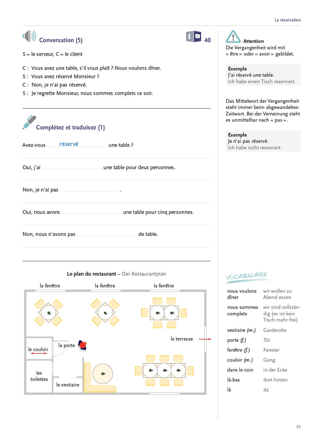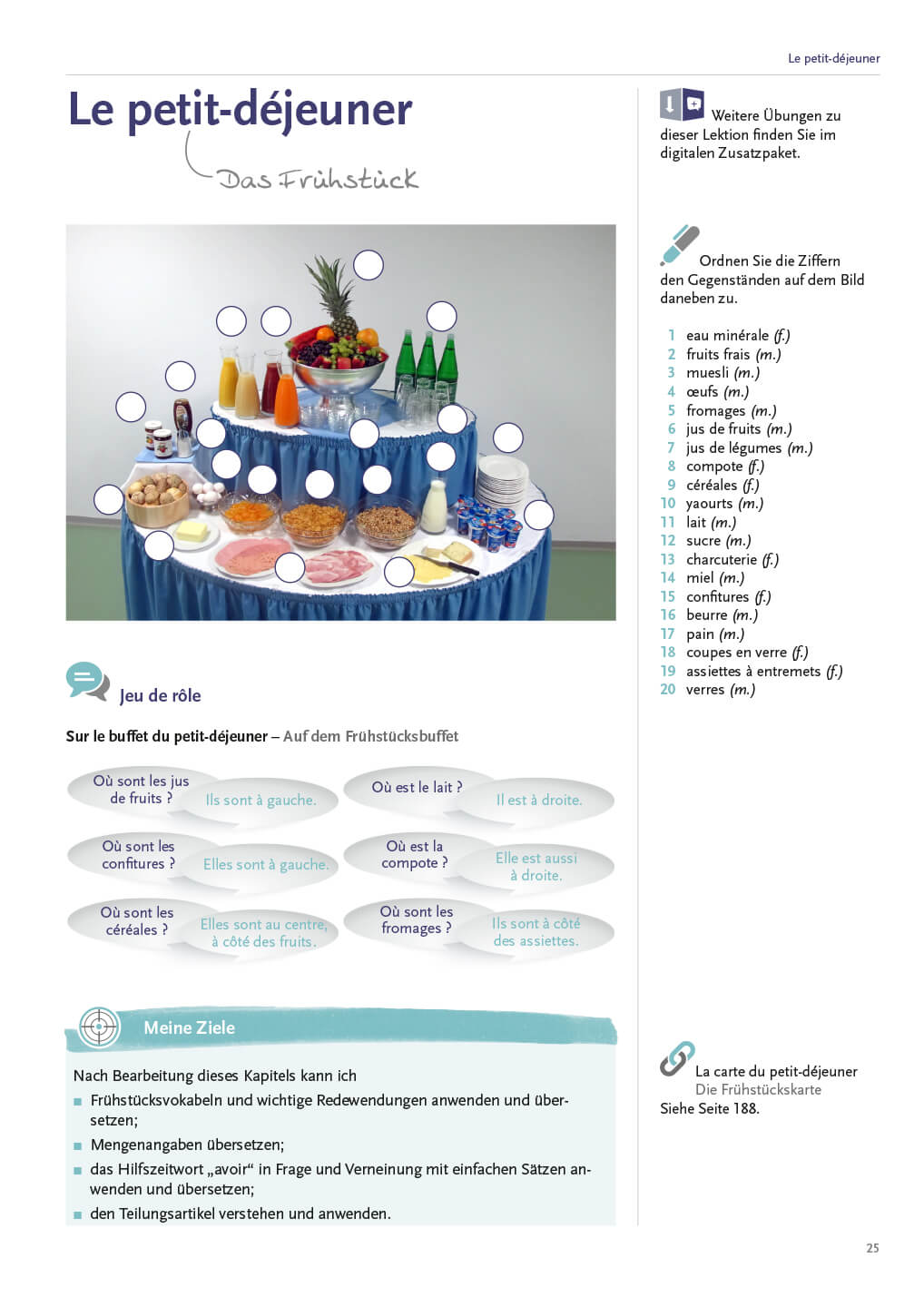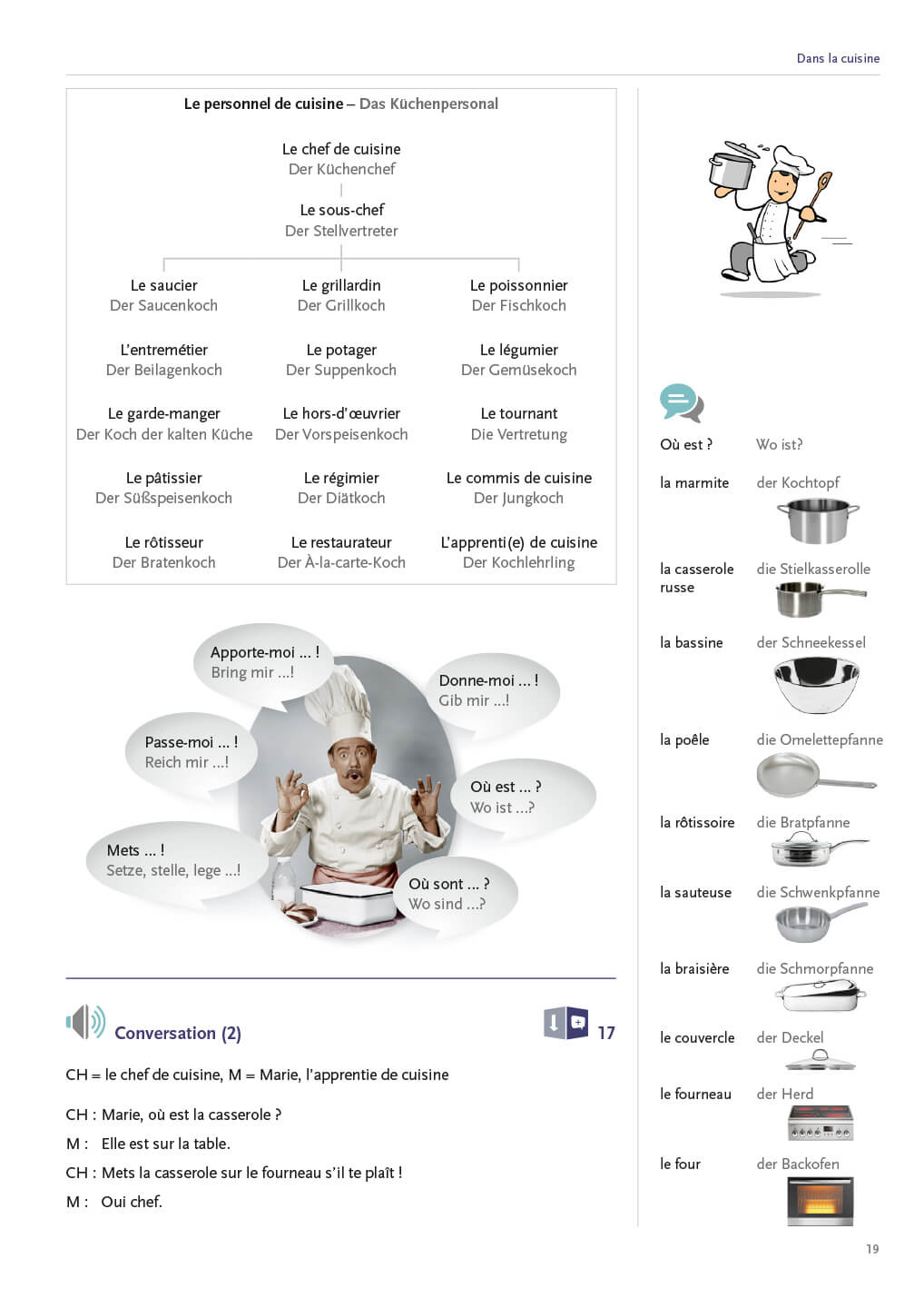 Zudem finden sich im Anhang des Buches eine umfangreiche Vokabelliste, nützliche Phrasen und Beispiele für Speisenkarten und Rezepte.