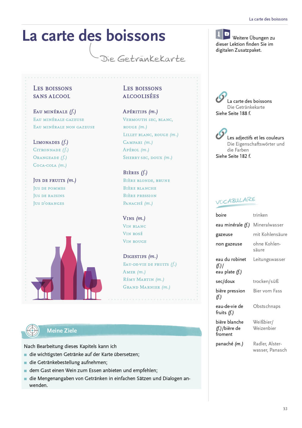 Das Hauptaugenmerk liegt auf dem Training der situationsadäquaten Kommunikation, wie sie in der Gastronomie, dem Tourismus und der Hotellerie täglich vorkommt. Die Grammatik wird in den Lektionen stets in dem für die Kommunikation erforderlichen Ausmaß erläutert und geübt.
