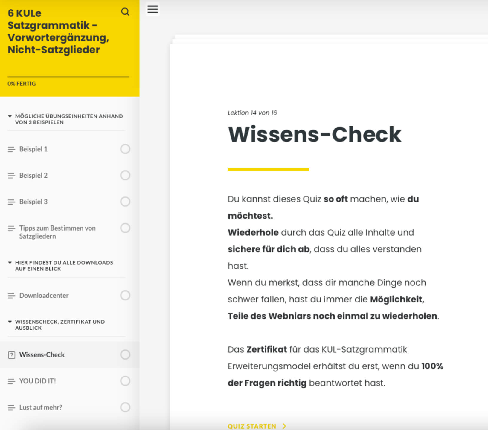 Lerne Vorwortergänzungen kennen, erfahre, wie man diese einführt sowie übt und wie man sie von Umstandsergänzungen unterscheidet. Lerne, was Nicht-Satzglieder sind und wie man damit umgeht. Lernen anhand von konkreten Beispielen, wie das Konzept in der Praxis umgesetzt werden kann. Vertiefe und erweitere dein eigenes Grammatikwissen anhand von Beispielen, um in der Praxis flexibel agieren zu können.