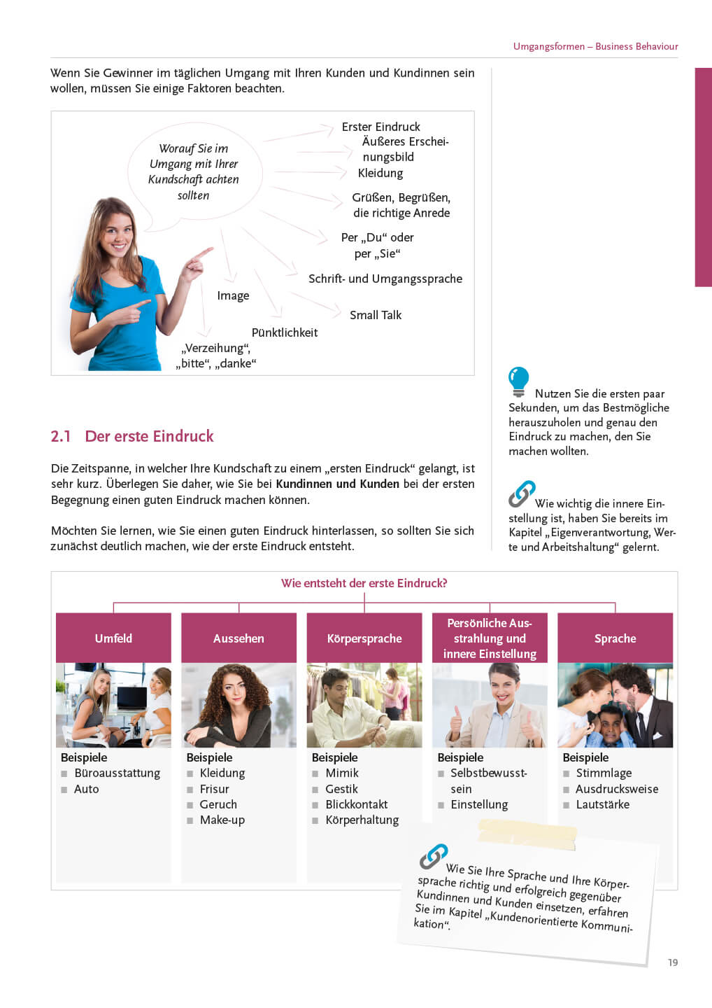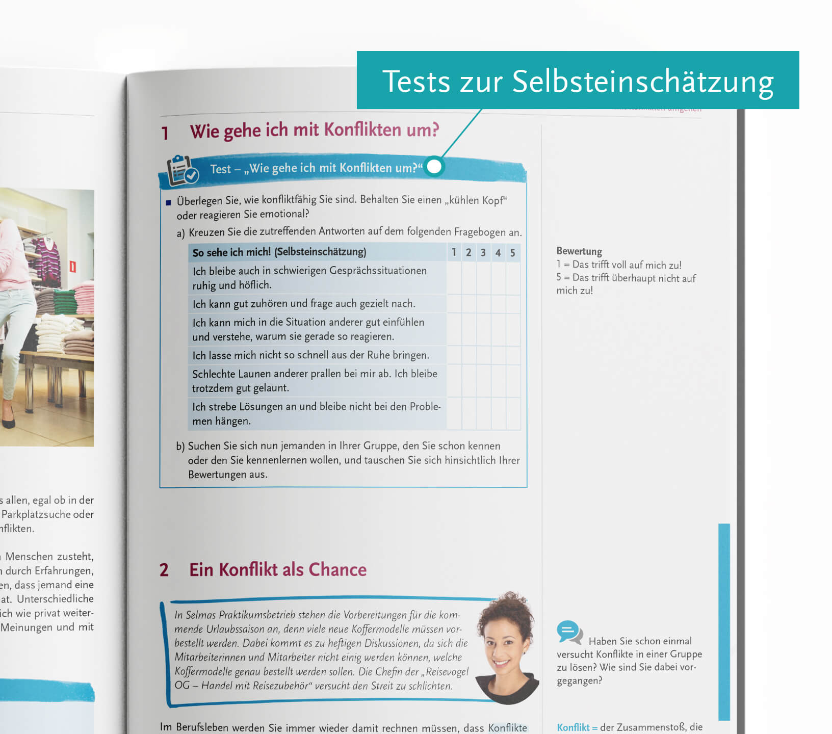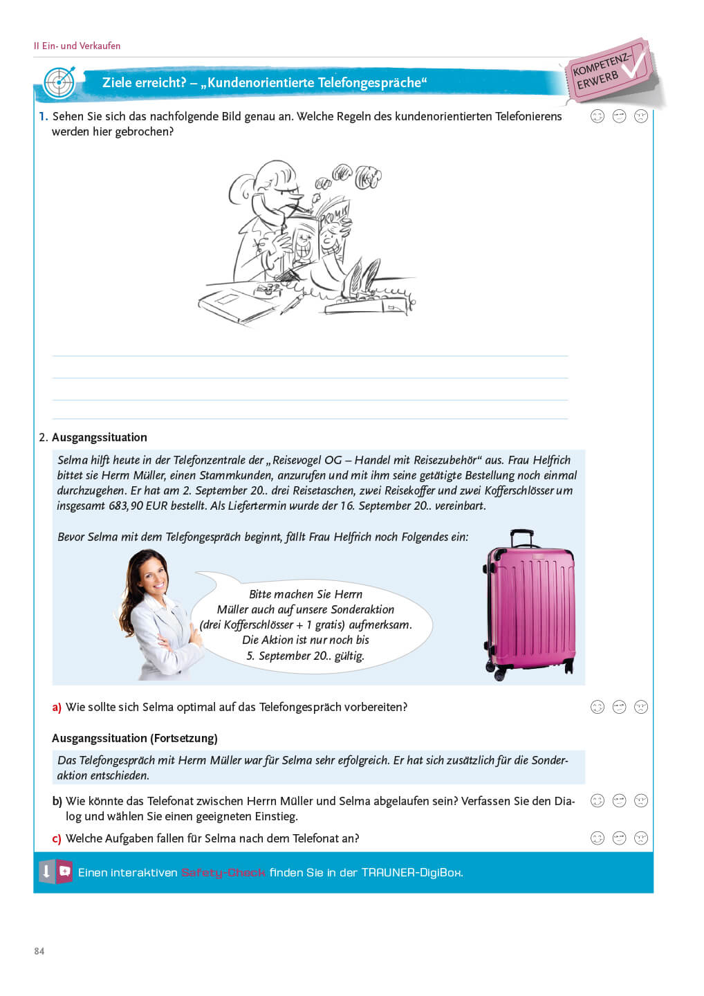Wie verhalte ich mich gegenüber Kundinnen und Kunden? Was bedeutet es, unternehmerisch zu denken und zu handeln? Wie kann ich Verkaufsgespräche zu einem positiven Abschluss bringen? Wie reagiere ich auf Kundenbeschwerden angemessen? Warum ist es wichtig, Kundenbeziehungen zu pflegen? – Auf diese und weitere wichtige Fragen werden die Schüler/innen bald durch selbstsicheres und situationsadäquates Verhalten in Unternehmen antworten können.