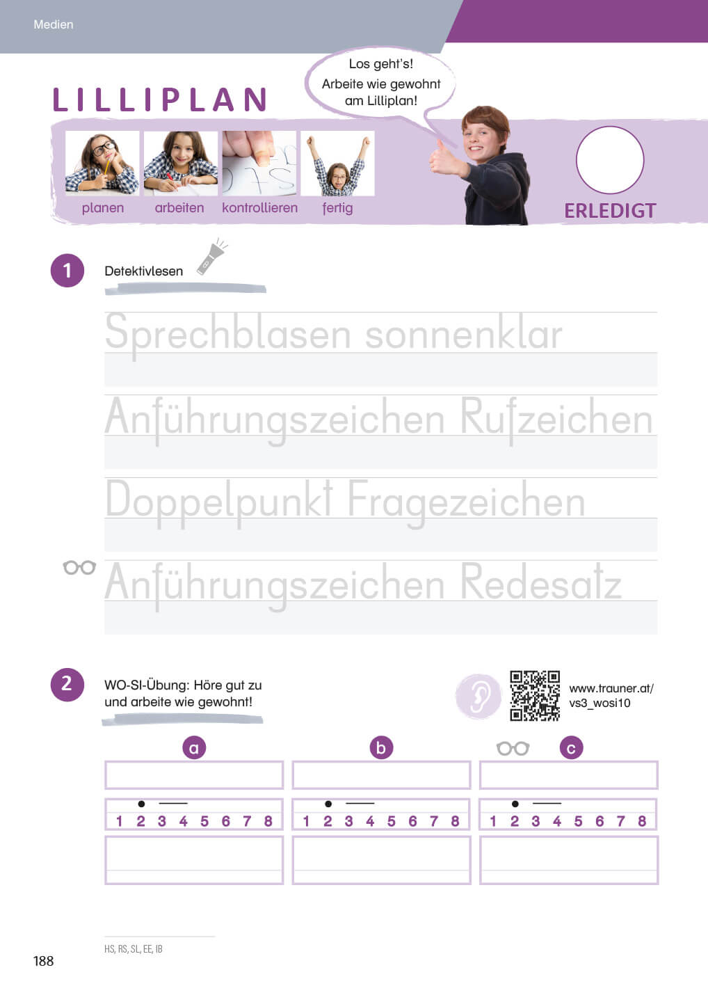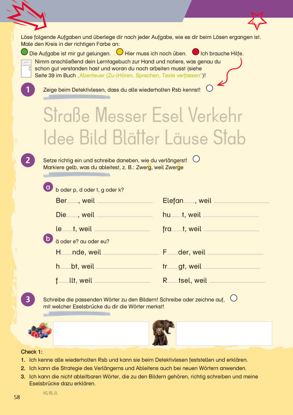 Coole Lieder passend zum Lernstoff unterstützen den Lernprozess. Mit Checkseiten können die Schüler/innen ihren Lernfortschritt immer wieder selbst überprüfen.
