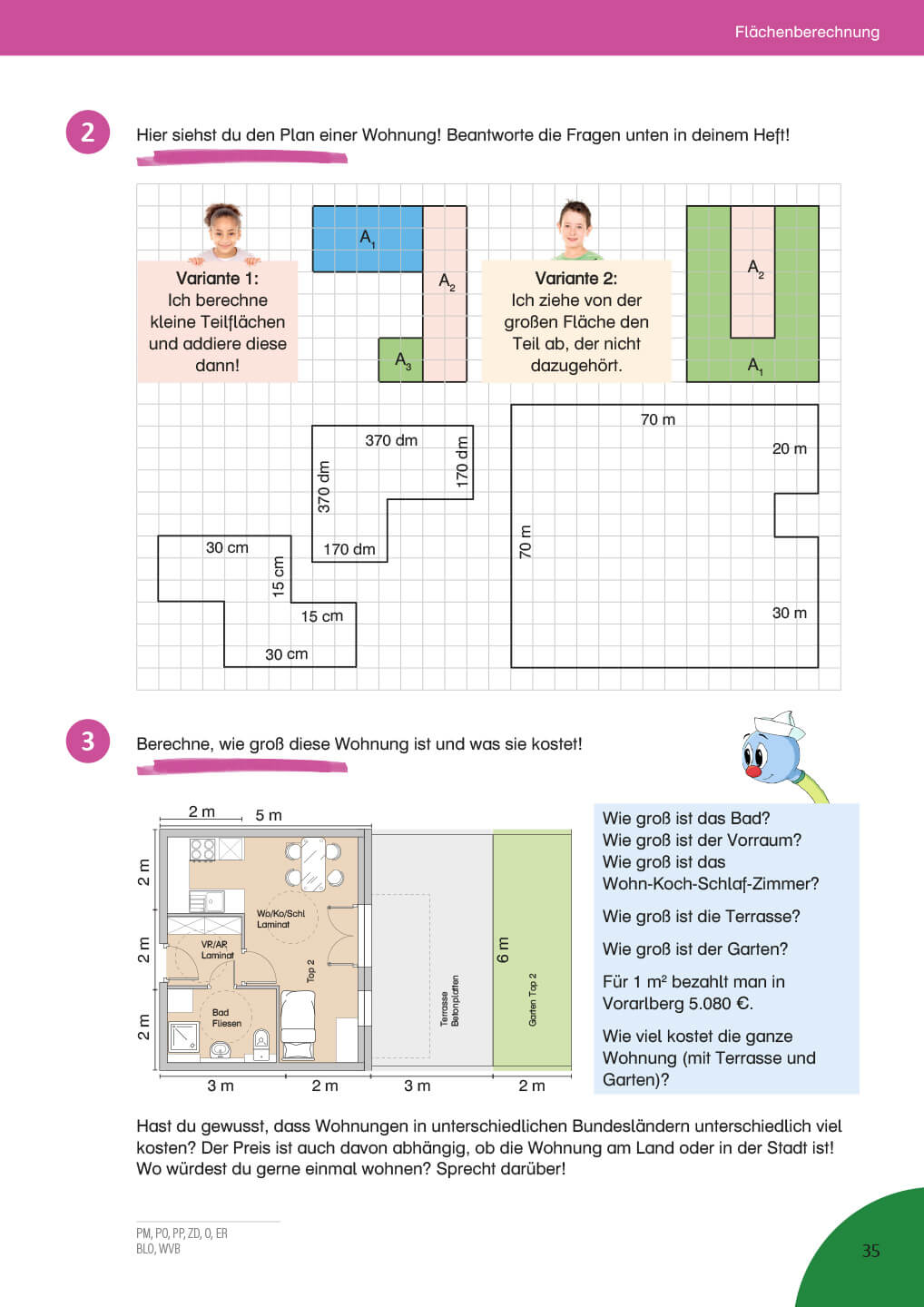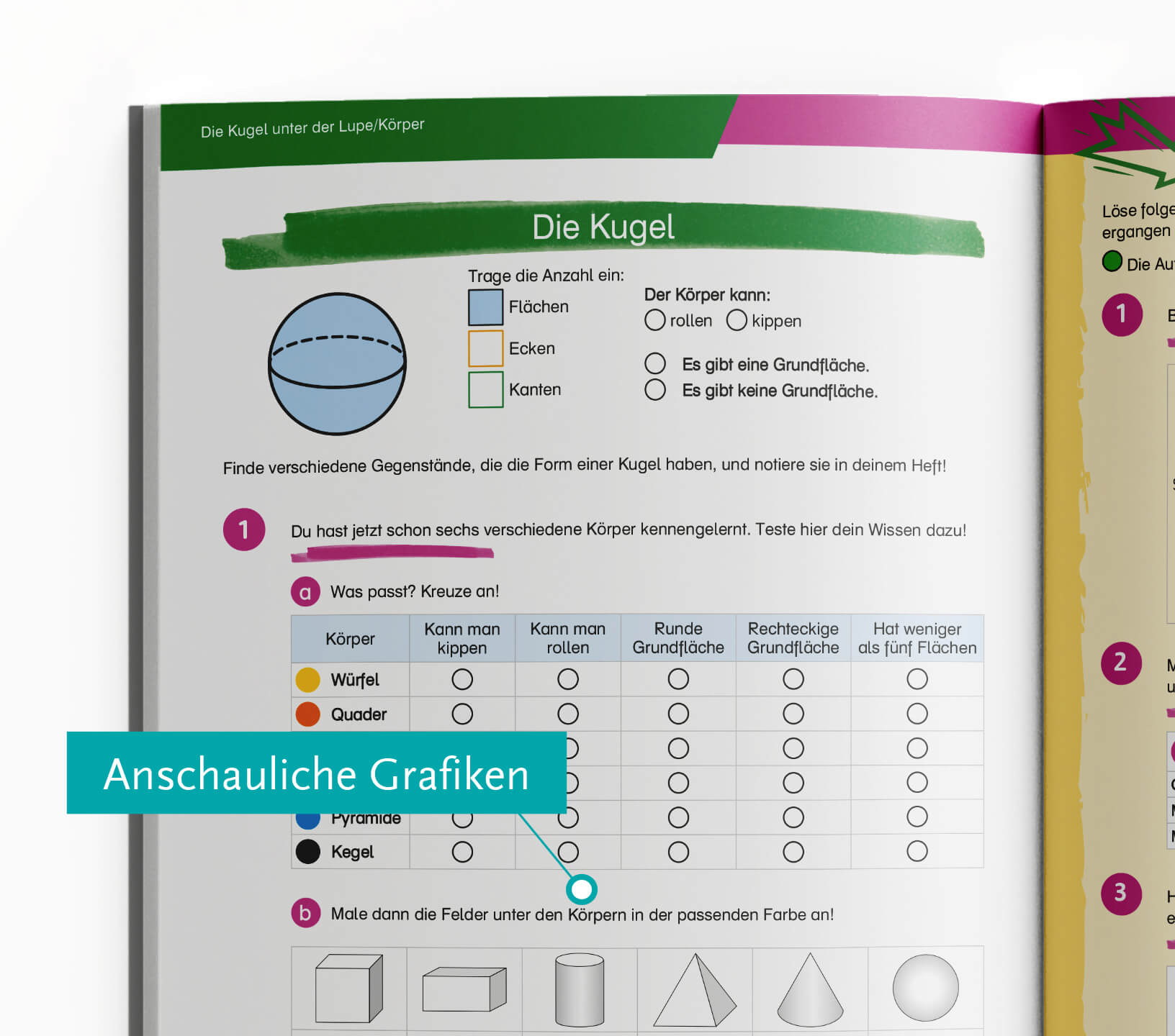 Die Schüler/innen lernen Muster, Formen, den rechten Winkel, den Umfang und vieles mehr kennen. Anschauliche Beispiele helfen dabei.