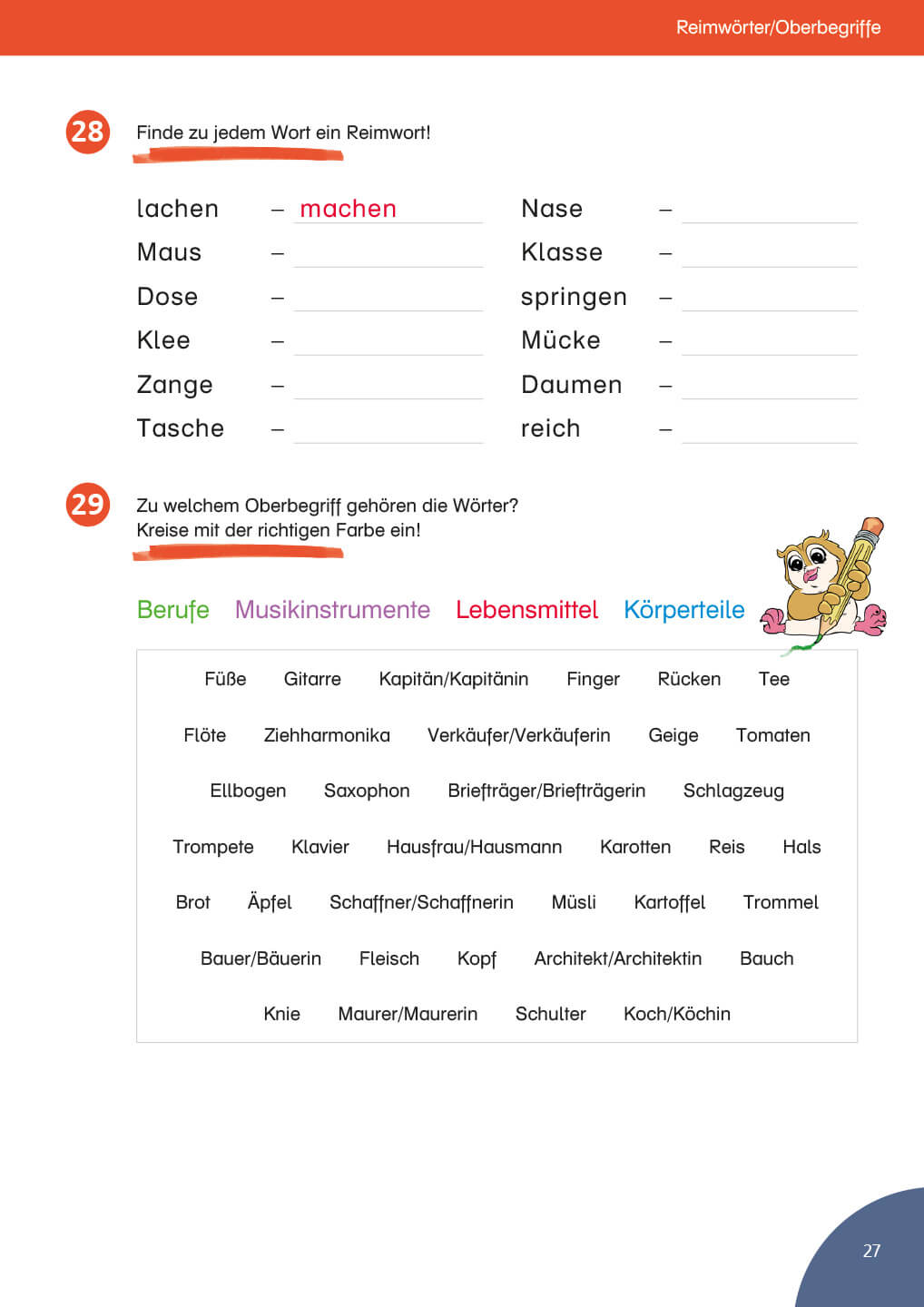 Abwechslungsreiche Übungen unterstützen bei der Wiederholung des Lehrstoffes der 2. Klasse