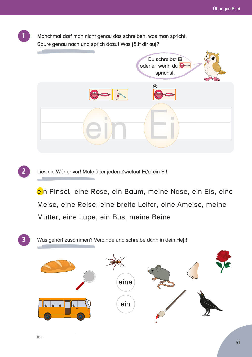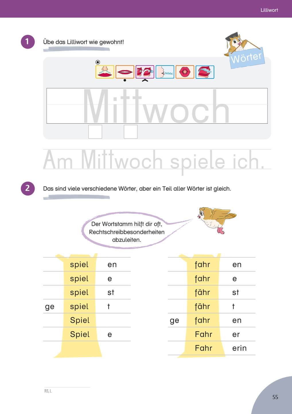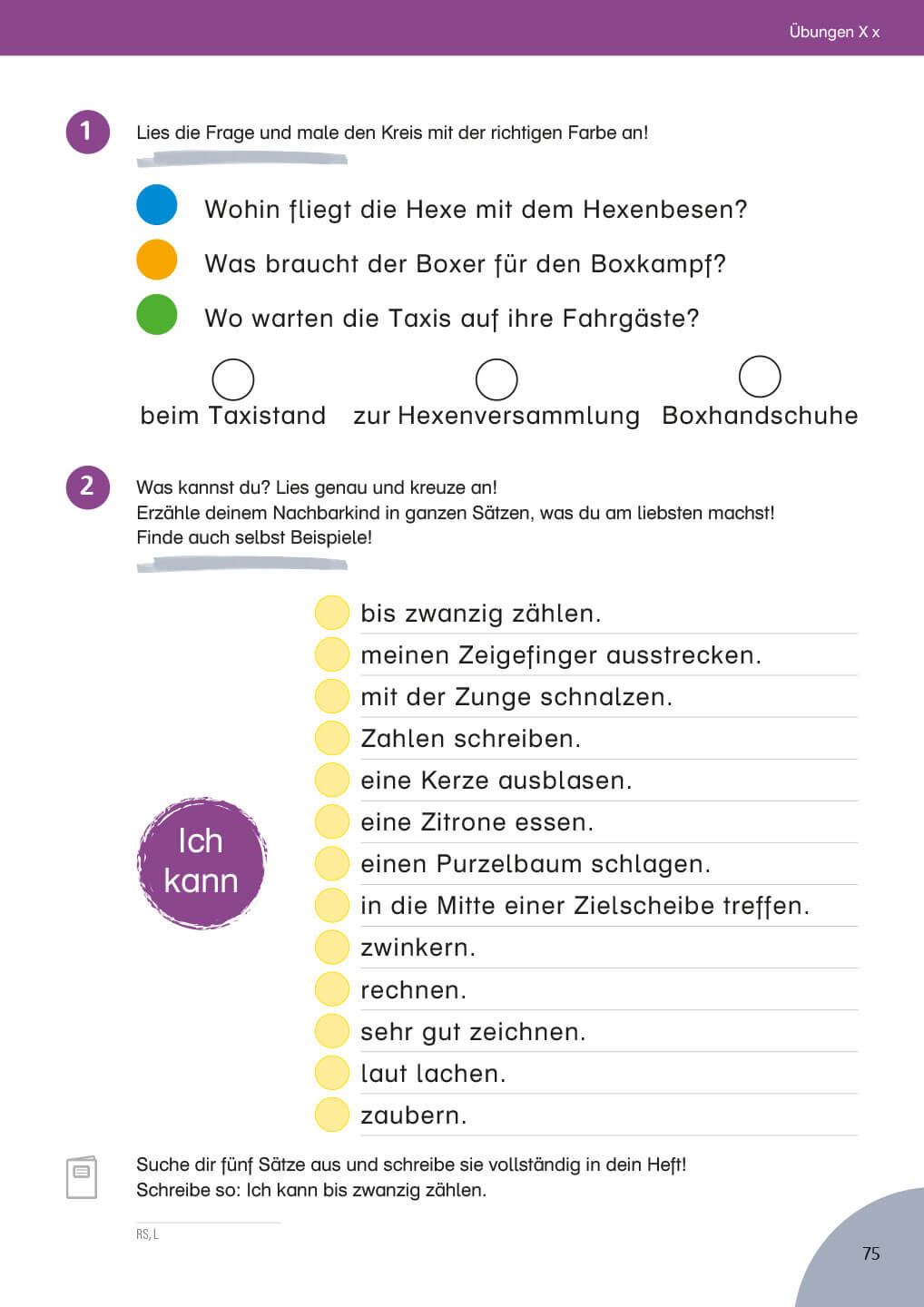 Das umfangreiche Übungsbuch dient zum Festigen der Lerninhalte. Wöchentliche Arbeitspläne fördern die Selbsttätigkeit der Schüler/innen. Ein gesicherter Schreibwortschatz wird aufgebaut und mithilfe zahlreicher unterschiedlicher Übungen vertieft.