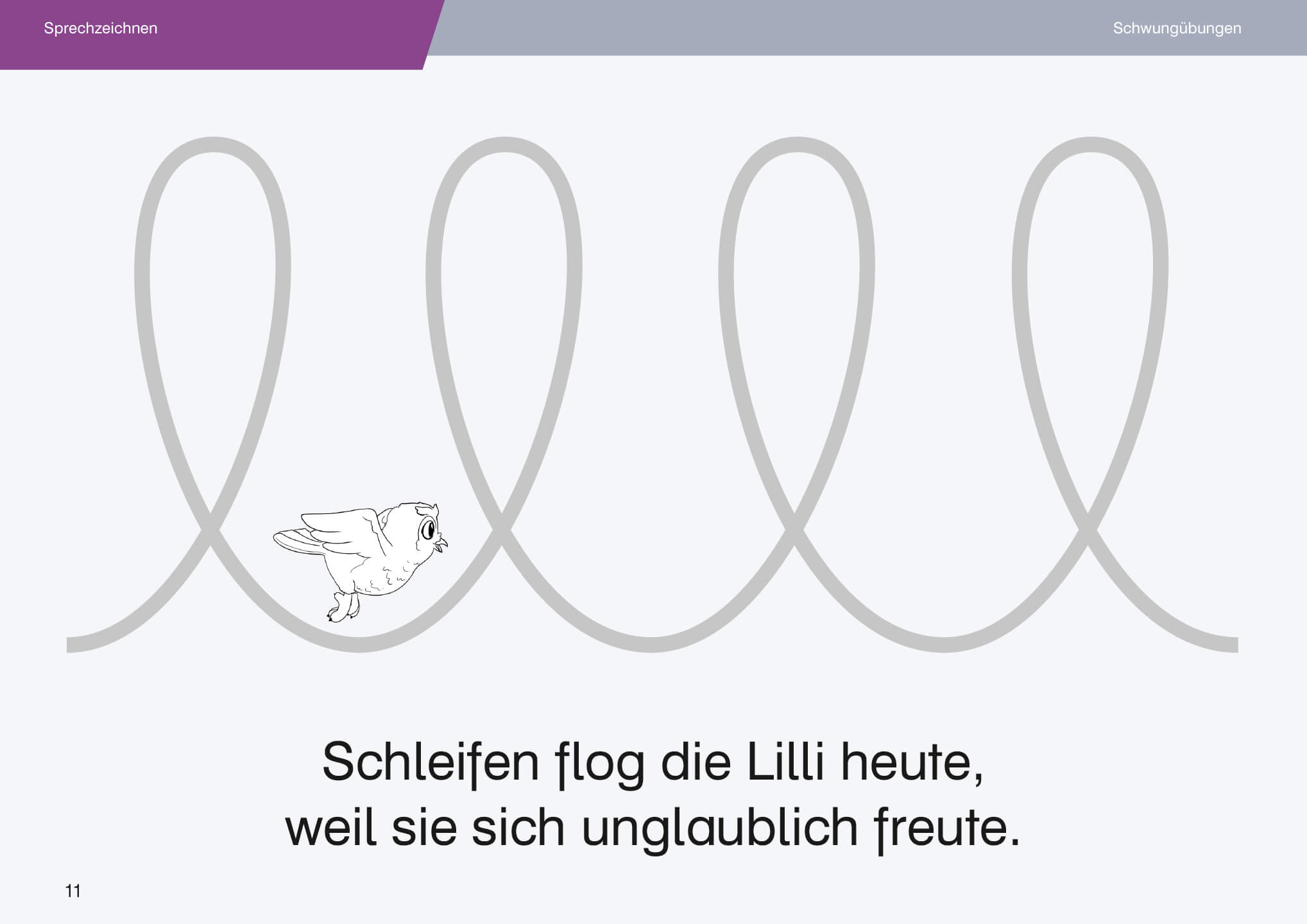 Schwungübungen mit begleitendem Sprechen fördern die Koordination von Mund und Hand – eine wesentliche Voraussetzung für flüssiges und entspanntes Schreiben.