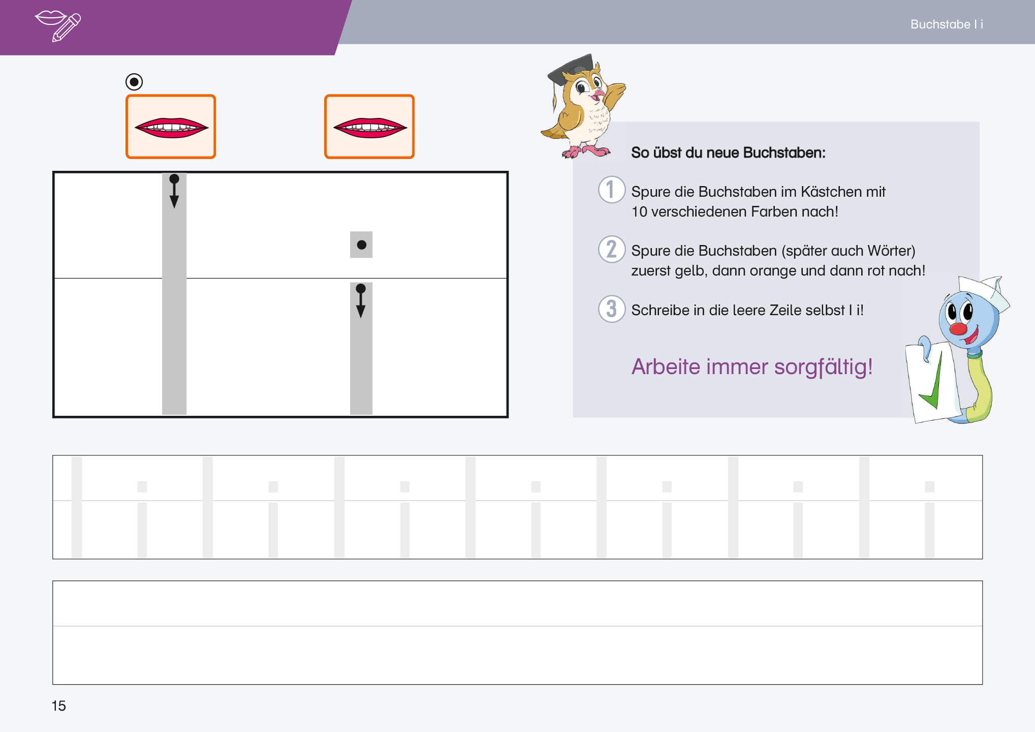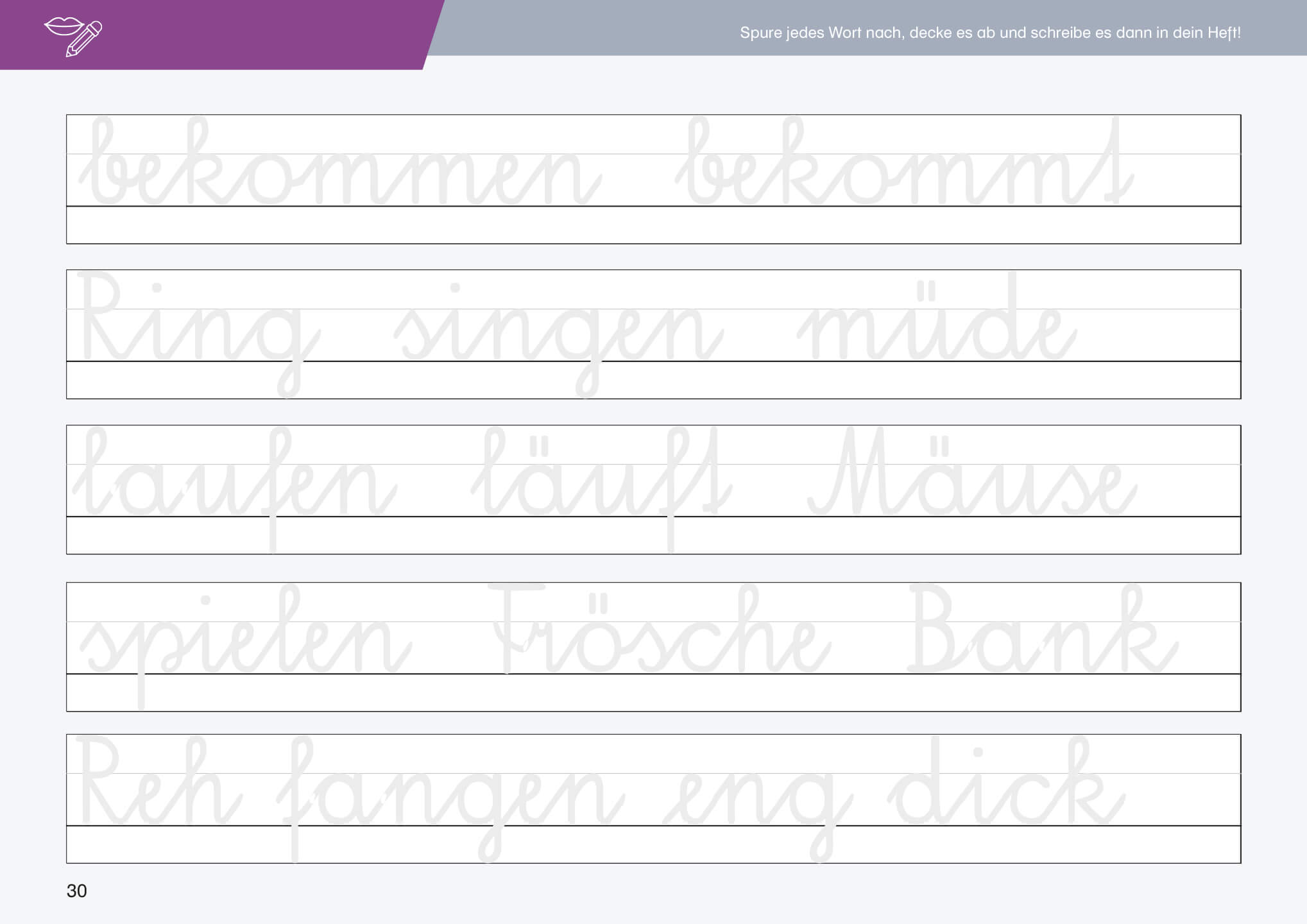 - Viele Schwungübungen und extragroße Zeilen erleichtern den Einstieg ins Schreiben