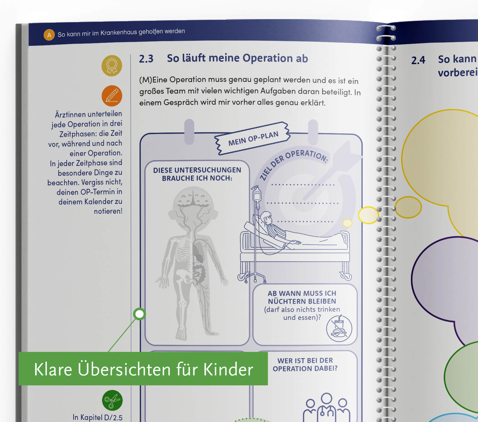 Durch kreative Spiele, Übungen, Bastelideen und informative Gespräche erhalten Kinder, Jugendliche und ihre Familien einen umfassenden Überblick über aktuelle gesundheits- und krankheitsbezogene Themen. Gemeinsam mit dem psychosozialen Team werden Strategien entwickelt, um mit den Herausforderungen des Krankenhausalltags besser umgehen zu können. Diese wissenschaftlich fundierten Mitmachbücher bieten darüber hinaus spezifische Informationen für Angehörige im begleitenden Online-Paket.