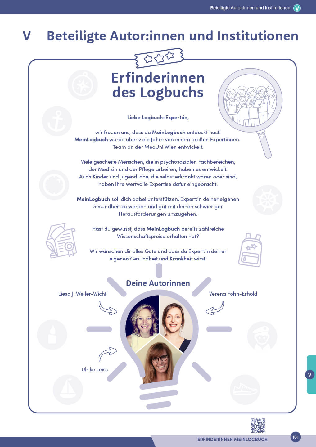 MeinLogbuch ist ein innovatives klinisch-psychologisches bzw. psychosoziales Behandlungsprogramm, das sich an Kinder und Jugendliche mit einer Erkrankung richtet und sie von der Diagnose bis zur Nachsorge begleitet und ihnen dabei hilft, zu Expert:innen ihrer eigenen Gesundheit und Krankheit zu werden. Die beiden Mitmachbücher (MeinLogbuch – Basisband und MeinLogbuch – Schwerpunktband Onkologie) sowie das Online-Begleitpaket für Familienangehörige basieren auf aktueller wissenschaftlicher Forschung.