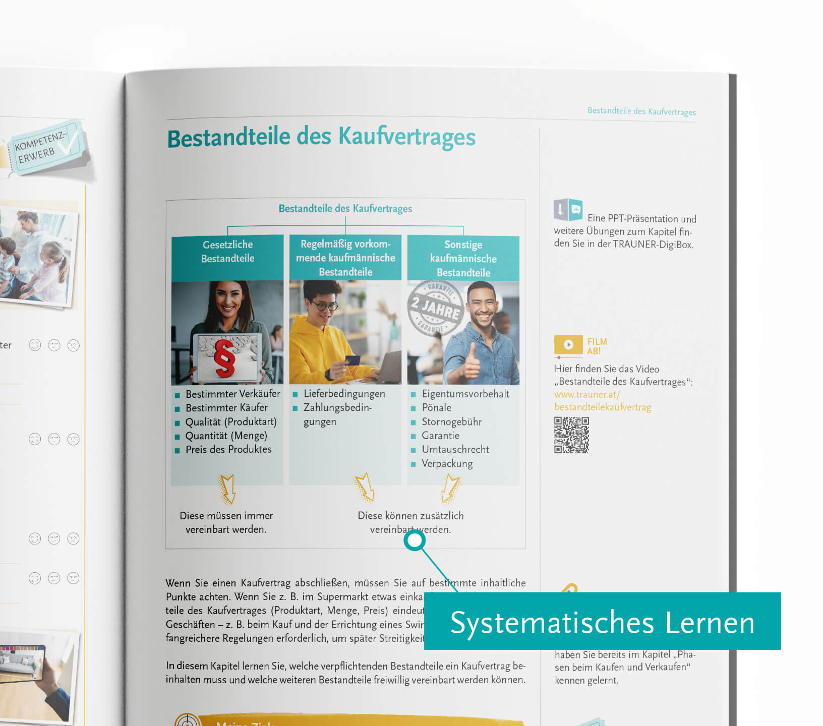 - Bitte bestellen Sie ein Prüfexemplar nur direkt beim Verlag (bestellung@trauner.at) – nicht beim Buchhandel. Dazu benötigen wir Ihren Namen und Ihre Schulanschrift. Überzeugen Sie sich so von der Qualität unserer Schulbücher.