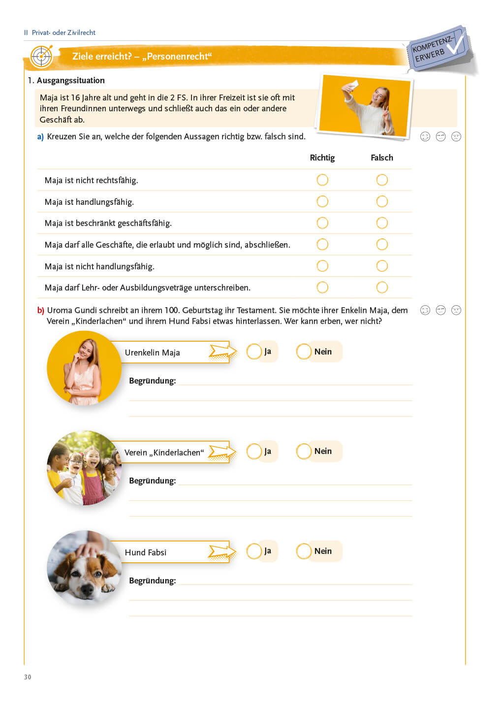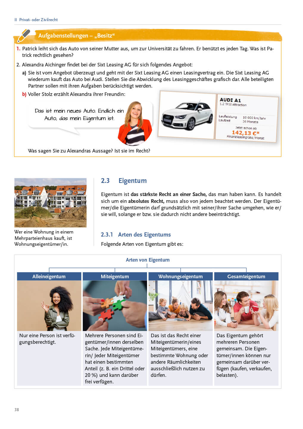 - Privat- und Zivilrecht (Personenrecht, Sachenrecht, Schuldrecht, Konsumentenschutzrecht)