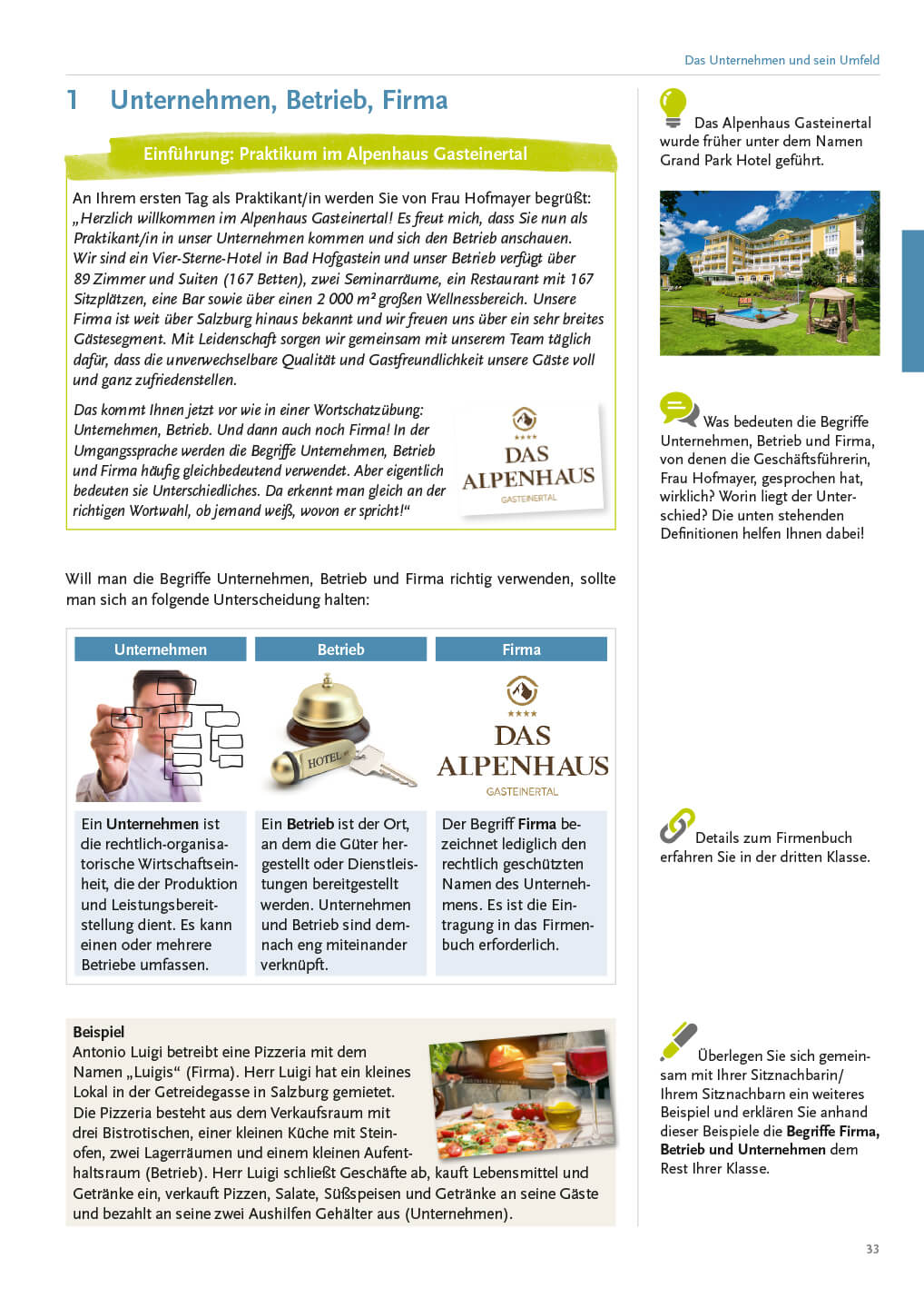 Die Schüler/innen erhalten dabei als Trainee tiefe Einblicke in das Innenleben verschiedener Unternehmen der Tourismus- und Freizeitwirtschaft (z. B. Alpenhaus Gasteinertal), wobei sie Aufgaben in unternehmerischen Echtsituationen erledigen. Zudem werden ihre persönlichen Berührungspunkte mit der Wirtschaft anhand von Alltagssituationen der Familie Berger aufgezeigt.