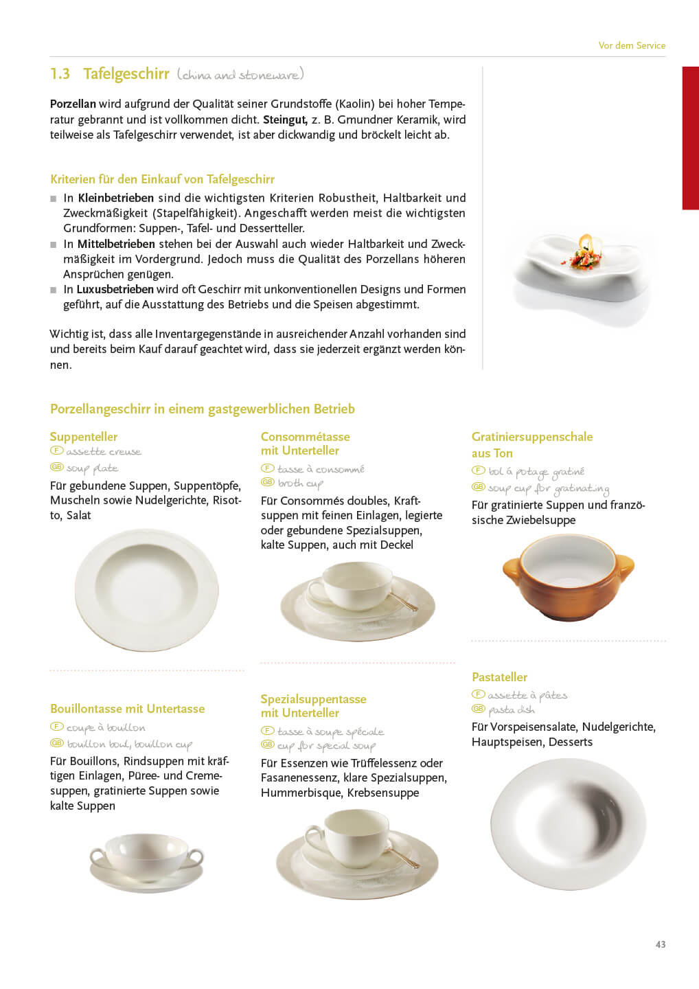 - Das Service der Mahlzeiten des Tages