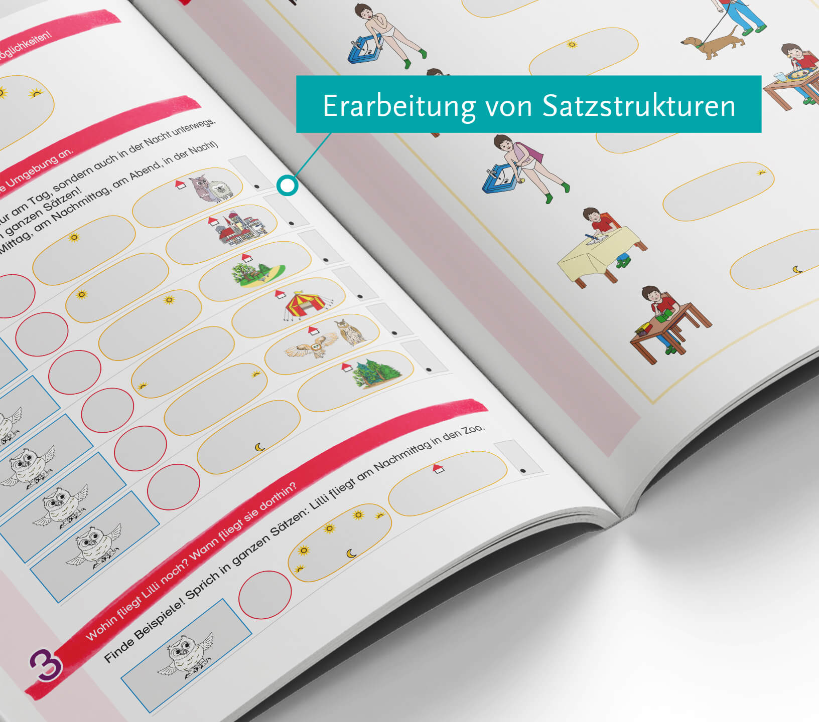 Sätze bauen mit Lilli ist eine wertvolle Ergänzung zu den Satzgrammatikmatten. Hüpfend am Boden oder mit den Fingern auf den mitgelieferten Kärtchen erfahren die Schüler/innen die Struktur der Satzgrammatik.