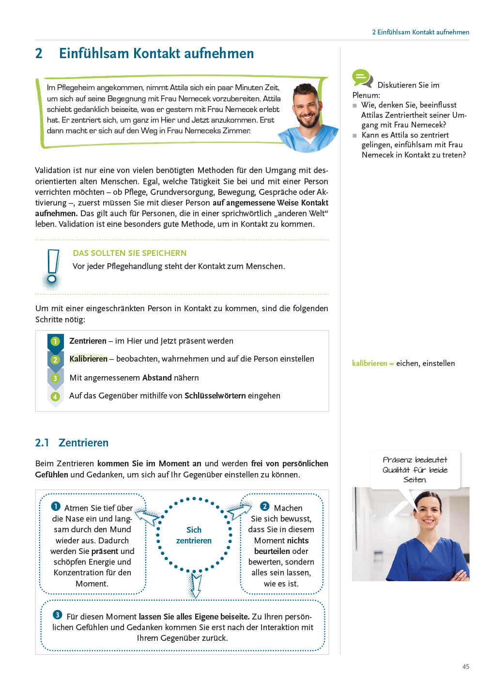 - Verbale und nonverbale Kommunikation mit validierender Grundhaltung