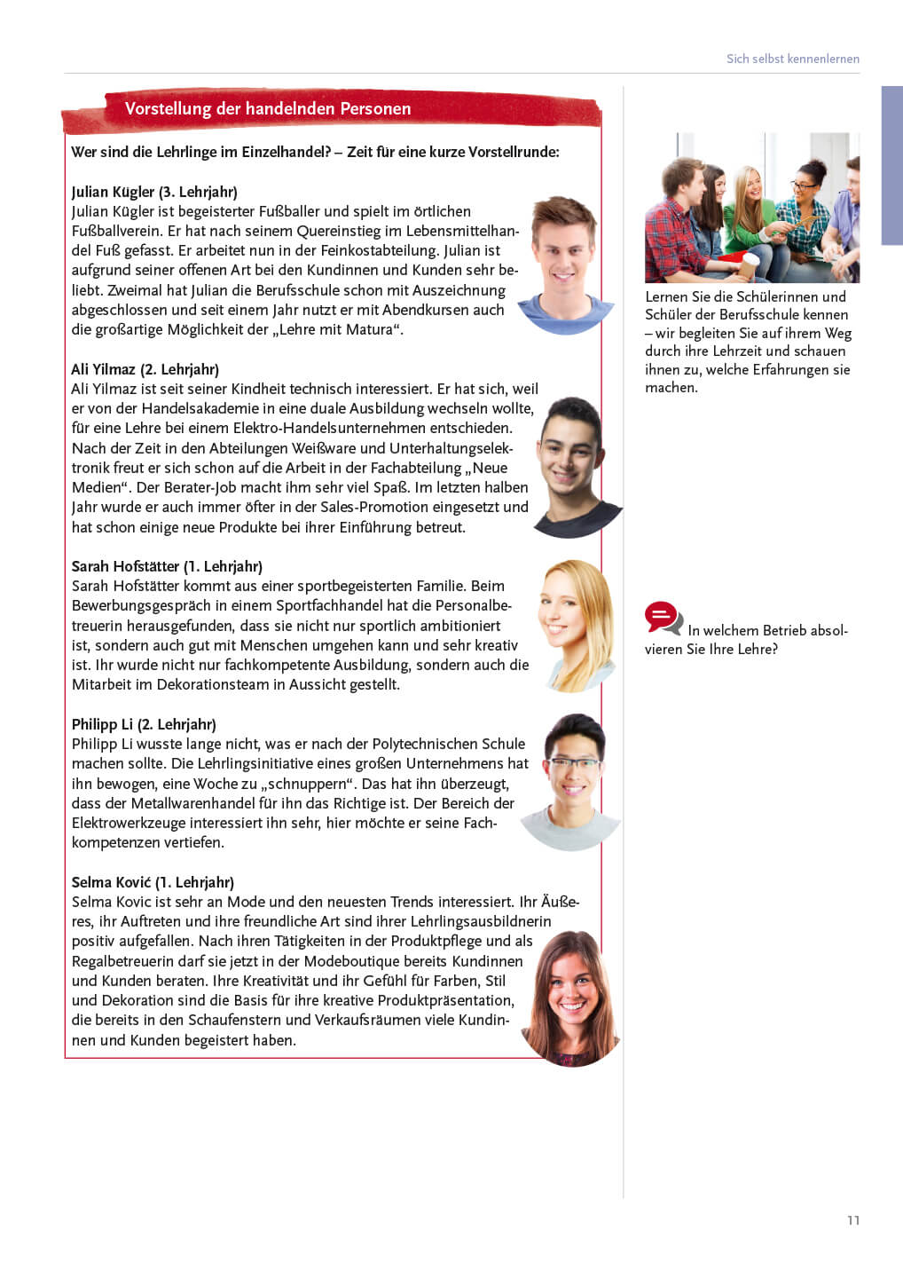 Das Buch deckt alle drei Gegenstände des Fachunterrichtes (Verkaufskompetenz und Persönlichkeitsentwicklung; Verkaufsförderung und Warenpräsentation; Verkaufspraktikum) ab.